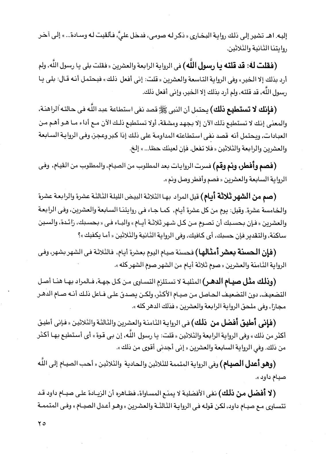 (وهو أعدل الصيام) وفي الرواية المتممة للثلاثين والحادية والثلاثين "أحب الصيام إلى الله صيام داود".
