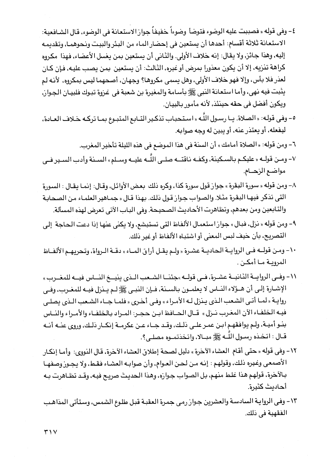 11 - وفي الرواية الثانية عشرة، في قوله "جئنا الشعب الذي ينيخ الناس فيه للمغرب" الإشارة إلى أن هؤلاء الناس لا يعلمون بالسنة، فإن النبي صلى الله عليه وسلم لم ينزل فيه للمغرب، وفي رواية "لما أتى الشعب الذي ينزل له الأمراء" وفي أخرى "فلما جاء الشعب الذي يصلي فيه الخلفاء الآن المغرب نزل" قال الحافظ ابن حجر: المراد بالخلفاء والأمراء والناس بنو أمية، ولم يوافقهم ابن عمر على ذلك، وقد جاء عن عكرمة إنكار ذلك، وروي عنه أنه قال: اتخذه رسول الله صلى الله عليه وسلم مبالاً، واتخذتموه مصلى؟ .
