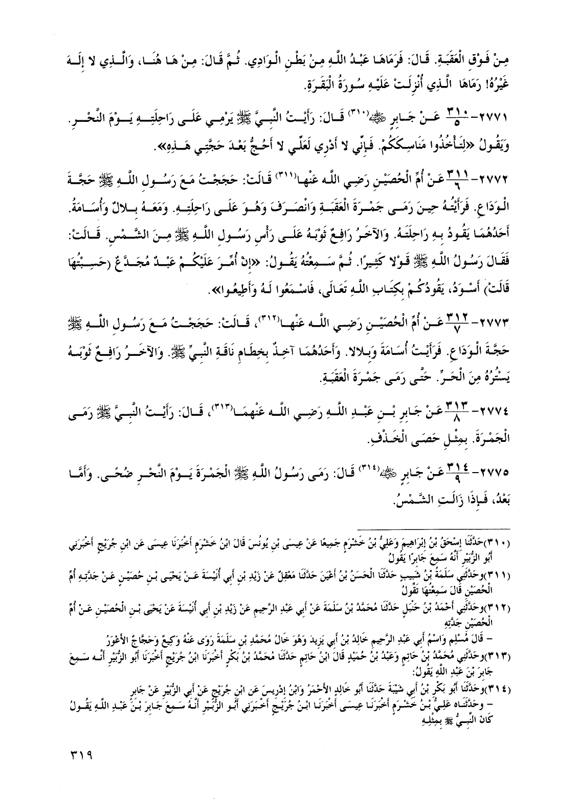 2771 - عن جابر رضي الله عنه قال: رأيت النبي صلى الله عليه وسلم يرمي على راحلته يوم النحر ويقول "لتأخذوا مناسككم. فإني لا أدري لعلي لا أحج بعد حجتي هذه".