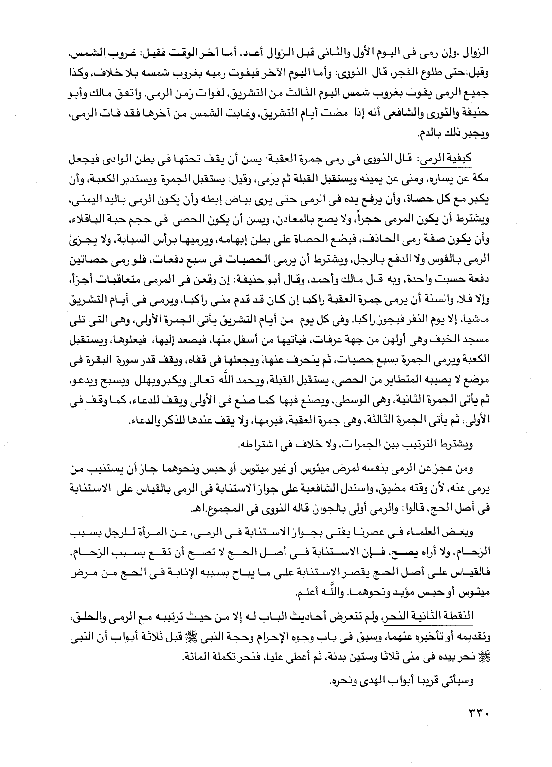 وبعض العلماء في عصرنا يفتي بجواز الاستنابة في الرمي، عن المرأة للرجل بسبب الزحام، ولا أراه يصح، فإن الاستنابة في أصل الحج لا تصح أن تقع بسبب الزحام، فالقياس على أصل الحج يقصر الاستنابة على ما يباح بسببه الإنابة في الحج من مرض ميئوس أو حبس مؤبد ونحوهما. والله أعلم.