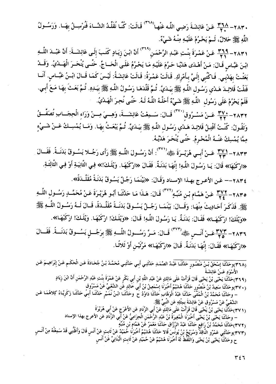 2836 - عن أنس رضي الله عنه قال: مر رسول الله صلى الله عليه وسلم برجل يسوق بدنة. فقال "اركبها" فقال: إنها بدنة. قال "اركبها" مرتين أو ثلاثاً.