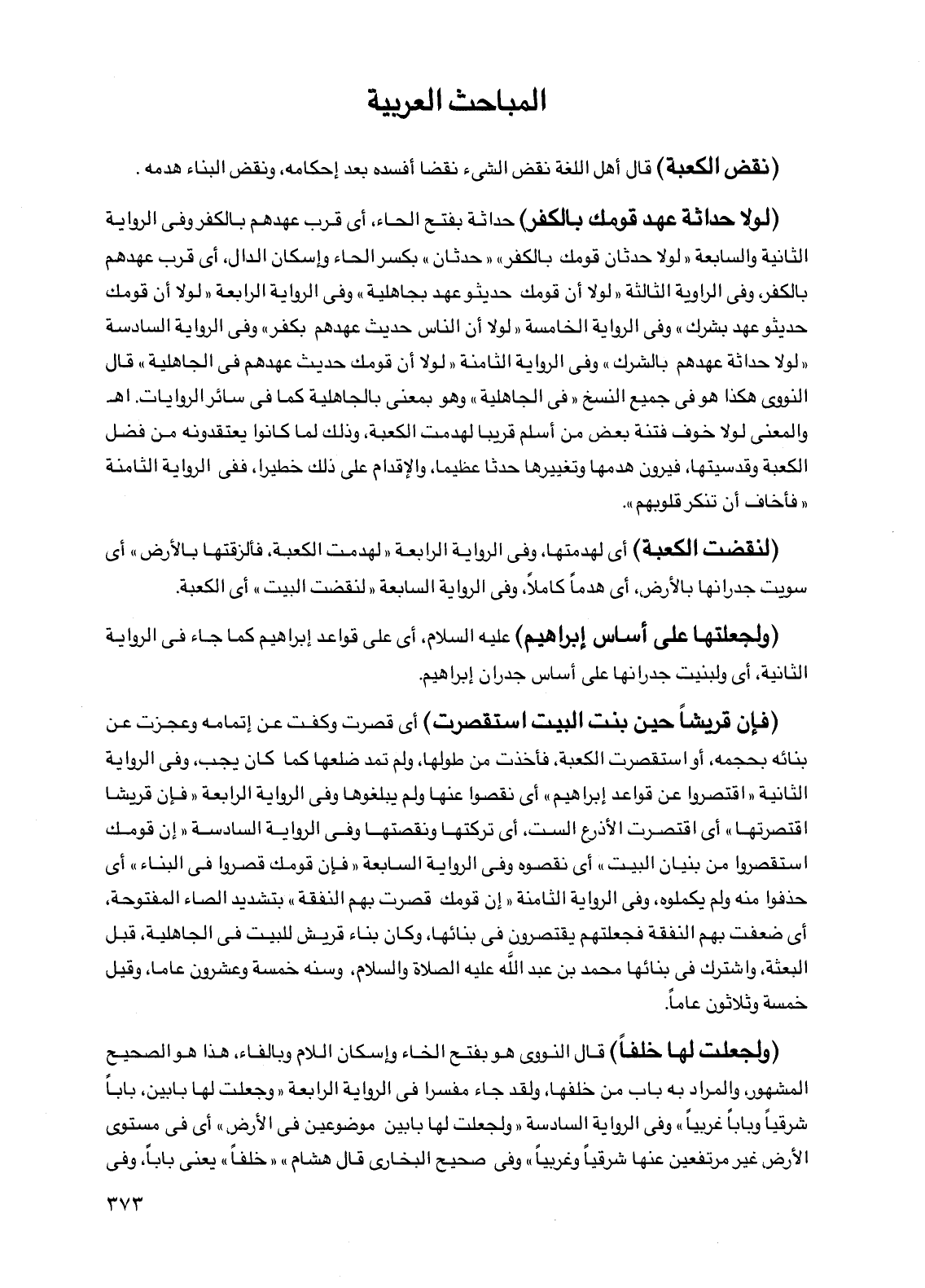 (نقض الكعبة) قال أهل اللغة نقض الشيء نقضاً أفسده بعد إحكامه، ونقض البناء هدمه.