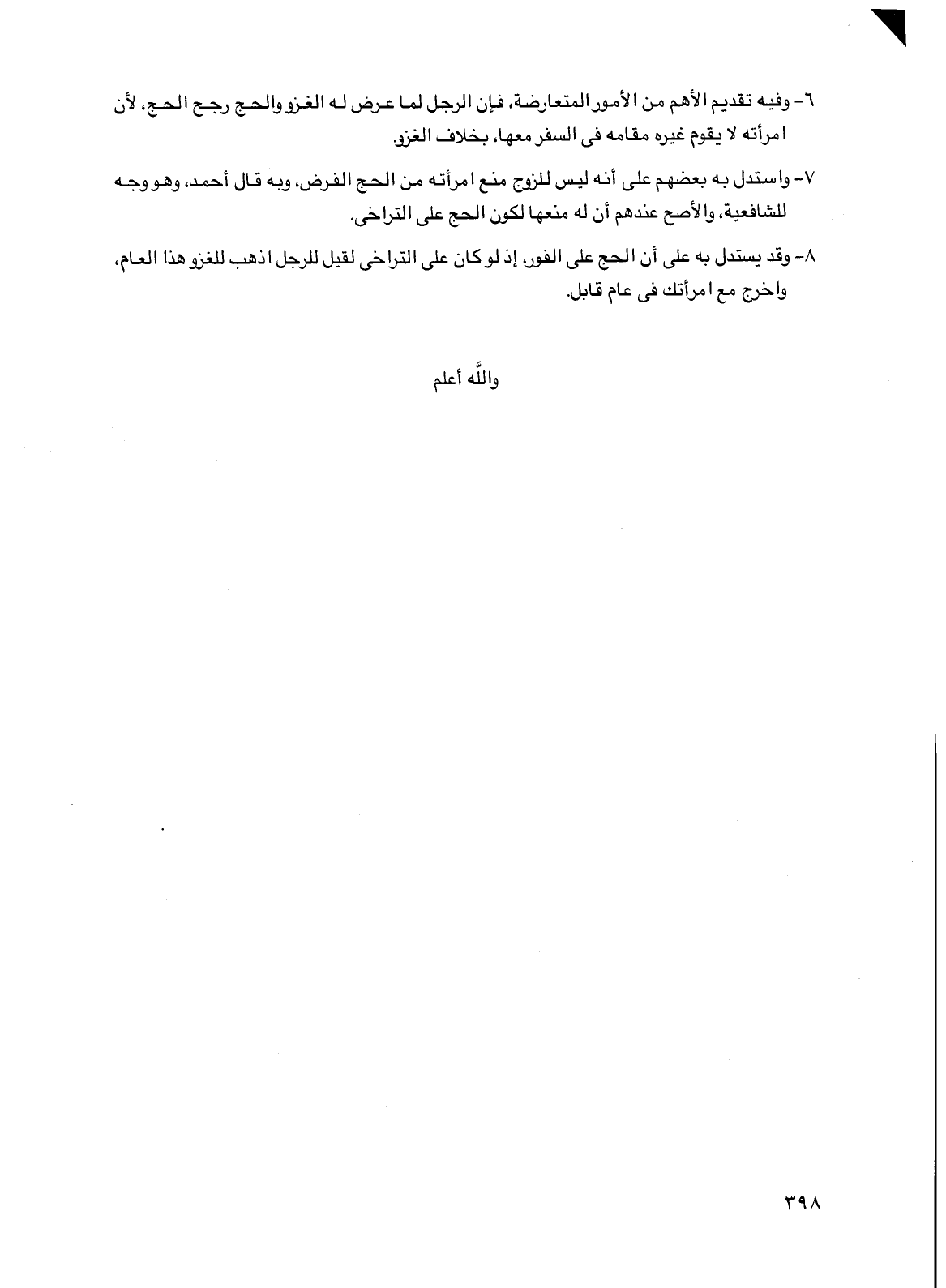 6 - وفيه تقديم الأهم من الأمور المتعارضة، فإن الرجل لما عرض له الغزو والحج رجح الحج، لأن امرأته لا يقوم غيره مقامه في السفر معها، بخلاف الغزو.