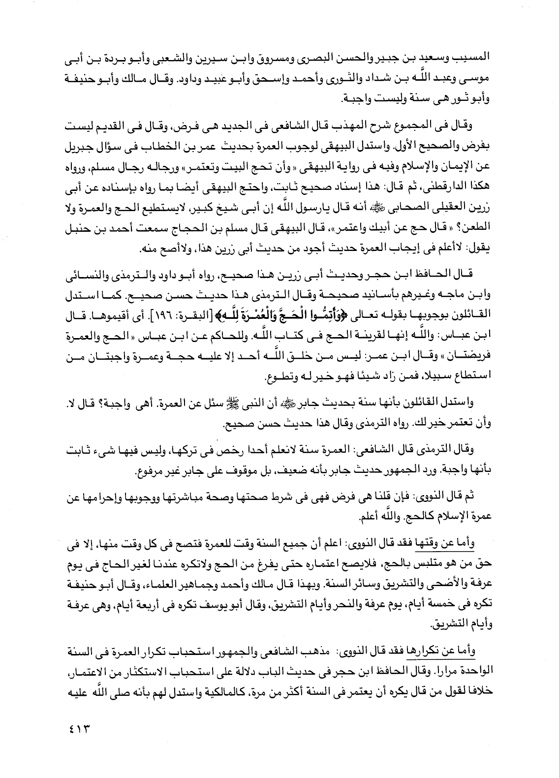 وقال الترمذي قال الشافعي: العمرة سنة لا نعلم أحداً رخص في تركها، وليس فيها شيء ثابت بأنها واجبة. ورد الجمهور حديث جابر بأنه ضعيف، بل موقوف على جابر غير مرفوع.