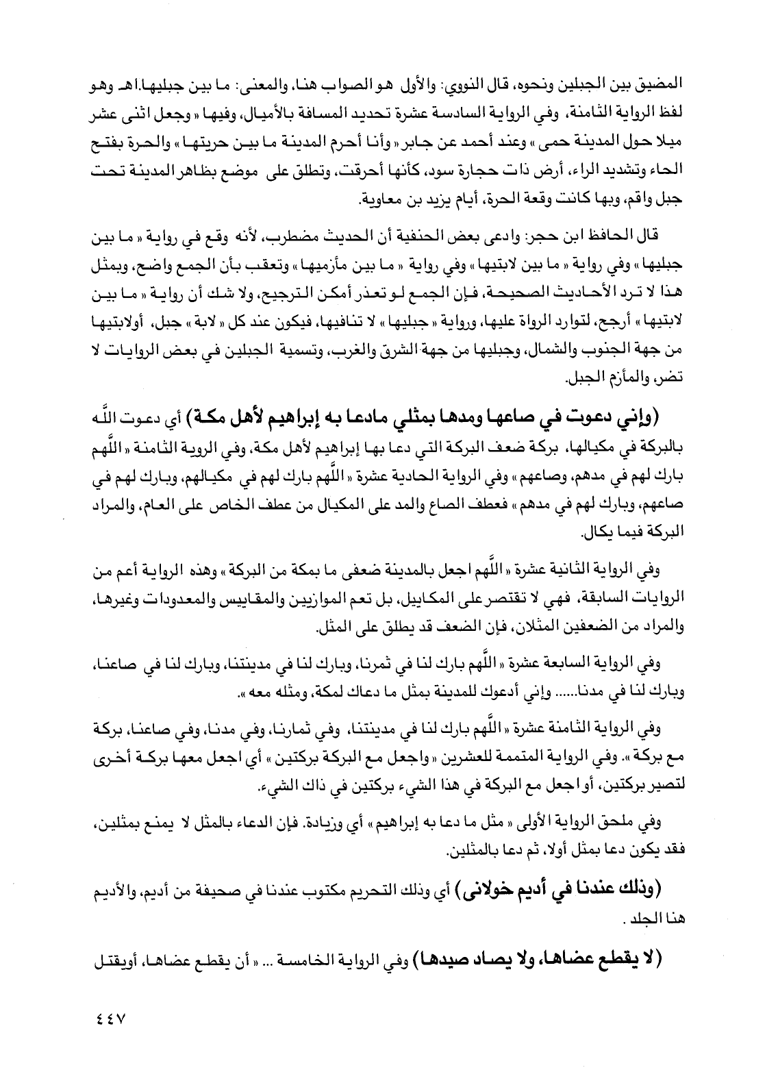 (لا يقطع عضاها، ولا يصاد صيدها) وفي الرواية الخامسة .... "أن يقطع عضاها، أو يقتل