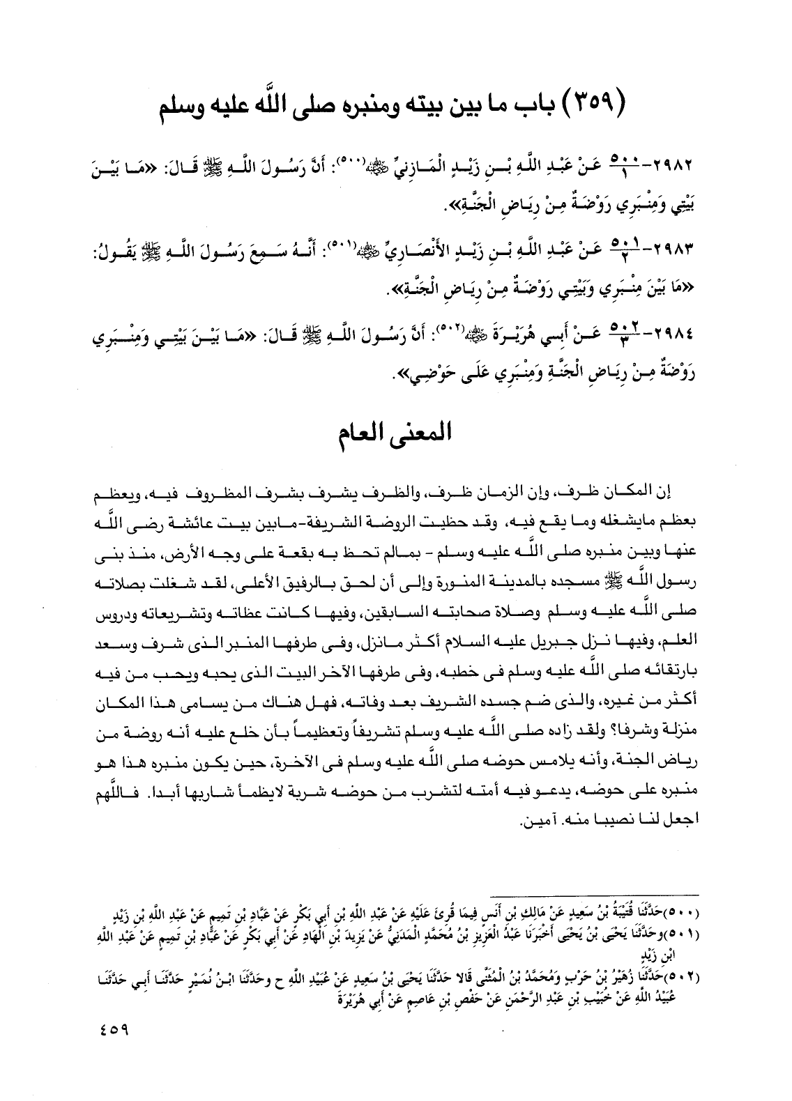 2983 - عن عبد الله بن زيد الأنصاري رضي الله عنه: أنه سمع رسول الله صلى الله عليه وسلم يقول: "ما بين منبري وبيتي روضة من رياض الجنة".