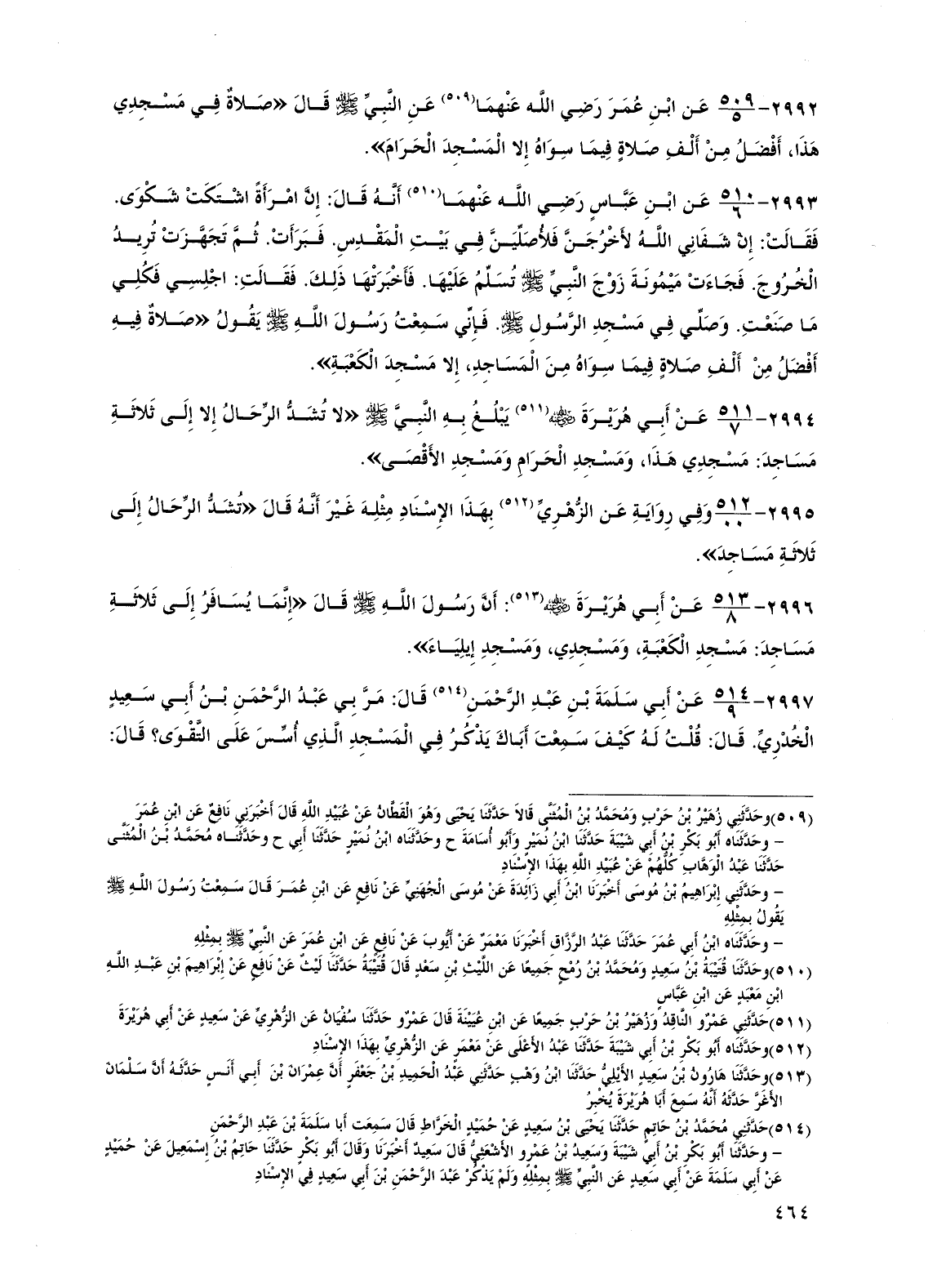 2994 - عن أبي هريرة رضي الله عنه يبلغ به النبي صلى الله عليه وسلم "لا تشد الرحال إلا إلى ثلاثة مساجد: مسجدي هذا، ومسجد الحرام ومسجد الأقصى".