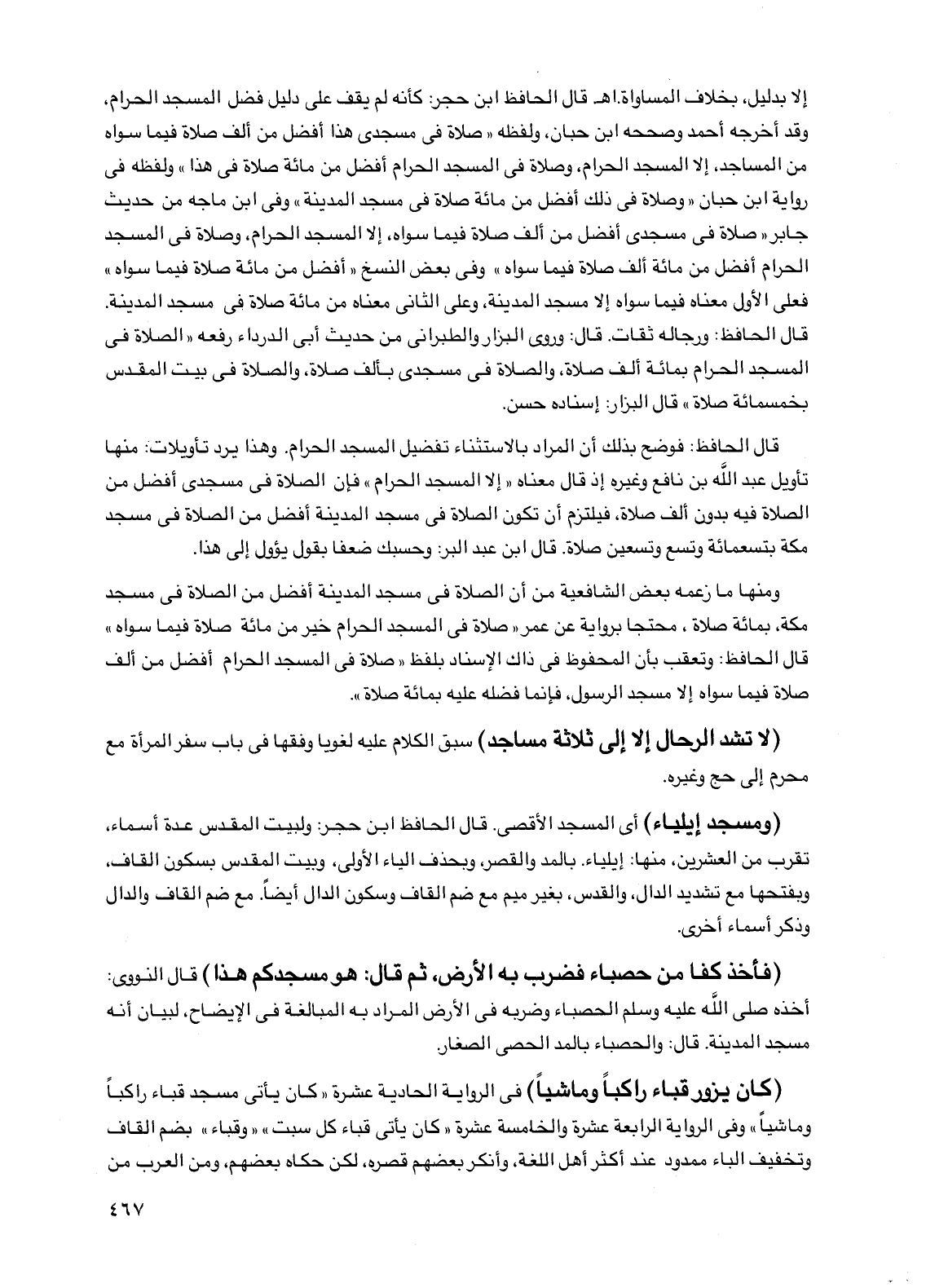 (لا تشد الرحال إلا إلى ثلاثة مساجد) سبق الكلام عليه لغوياً وفقها في باب سفر المرأة مع محرم إلى حج وغيره.
