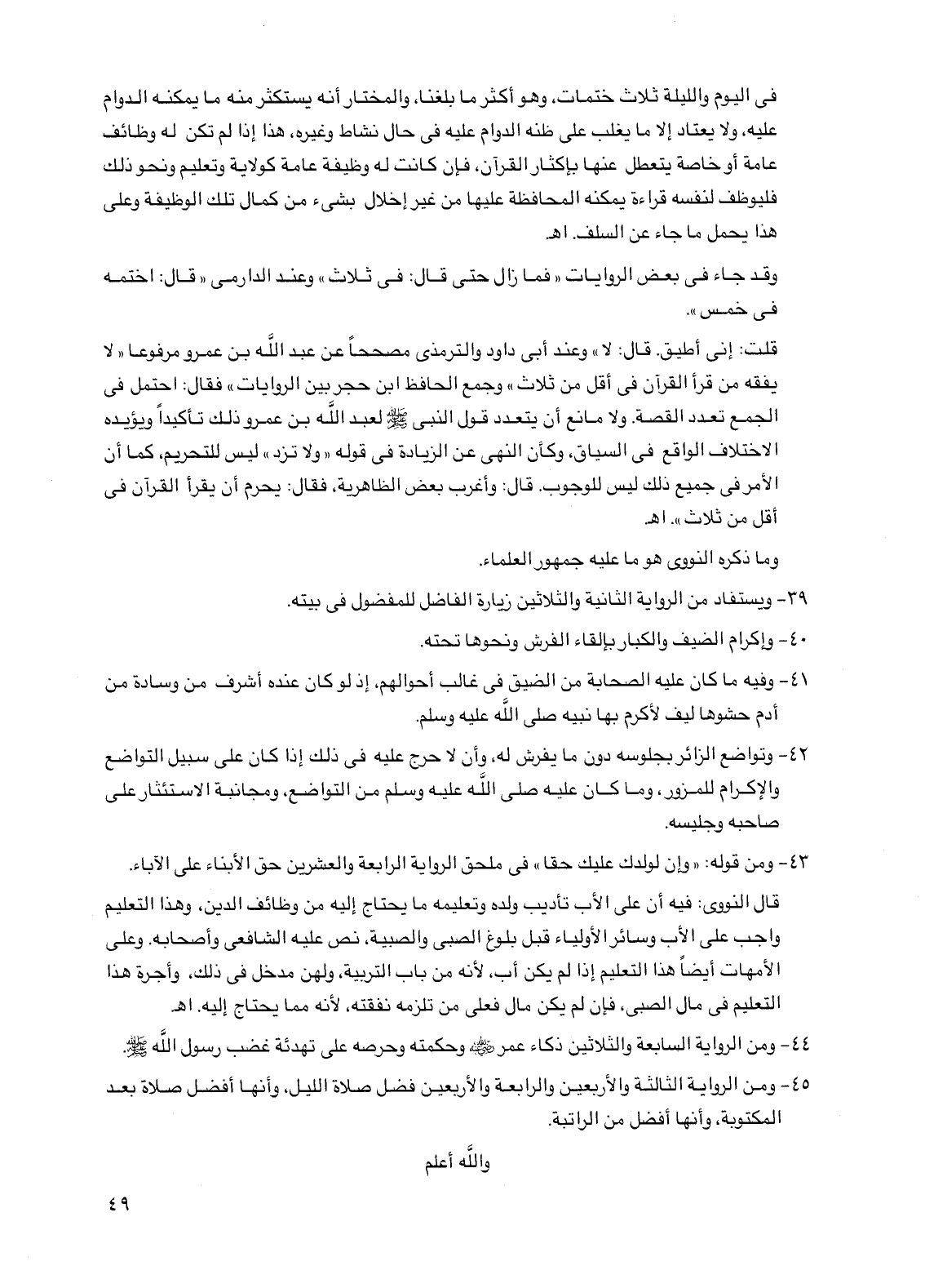 45 - ومن الرواية الثالثة والأربعين والرابعة والأربعين فضل صلاة الليل، وأنها أفضل صلاة بعد المكتوبة، وأنها أفضل من الراتبة.