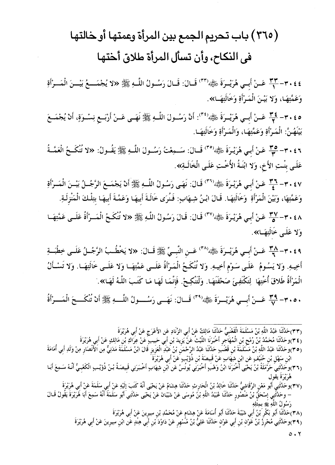 (365) باب تحريم الجمع بين المرأة وعمتها أو خالتها في النكاح، وأن تسأل المرأة طلاق أختها
