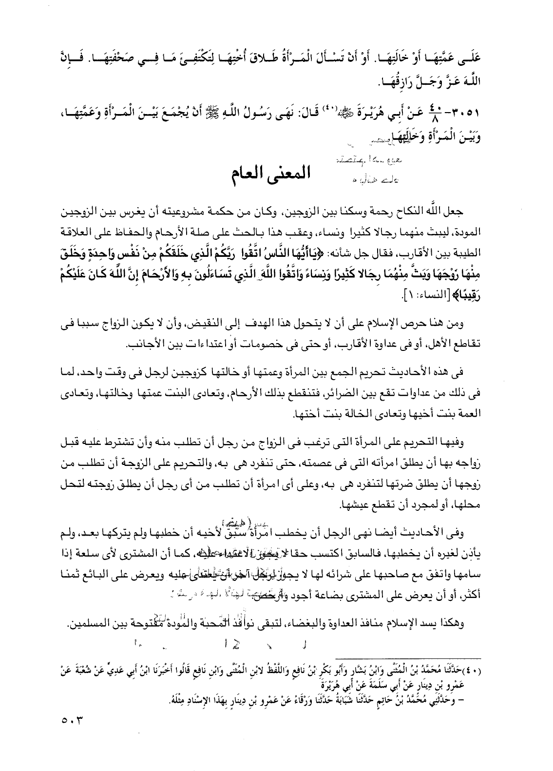 3051 - عن أبي هريرة رضي الله عنه قال: نهى رسول الله صلى الله عليه وسلم أن يجمع بين المرأة وعمتها، وبين المرأة وخالتها.