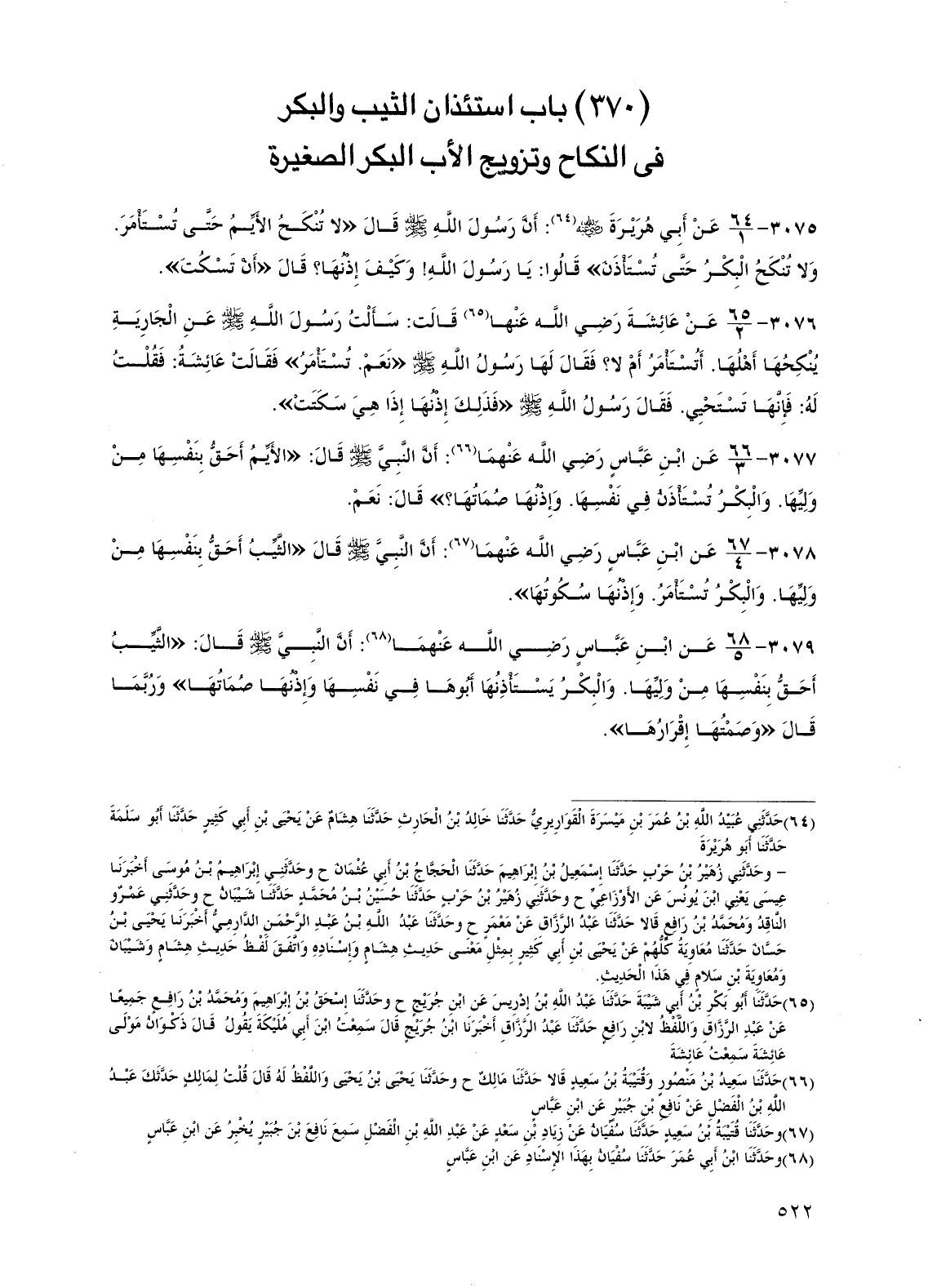 (370) باب استئذان الثيب والبكر في النكاح وتزويج الأب البكر الصغيرة
