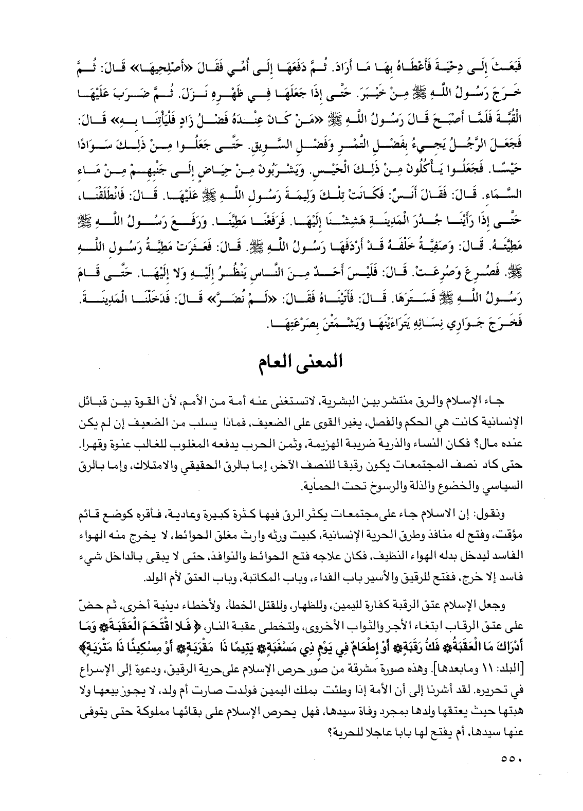 وجعل الإسلام عتق الرقبة كفارة لليمين، وللظهار، وللقتل الخطأ، ولأخطاء دينية أخرى، ثم حض على عتق الرقاب ابتغاء الأجر والثواب الأخروي، ولتخطي عقبة النار، {فلا اقتحم العقبة وما أدراك ما العقبة فك رقبة أو إطعام في يوم ذي مسغبة يتيماً ذا مقربة أو مسكيناً ذا متربة} [البلد: 11 وما بعدها]. وهذه صورة مشرقة من صور حرص الإسلام على حرية الرقيق، ودعوة إلى الإسراع في تحريره. لقد أشرنا إلى أن الأمة إذا وطئت بملك اليمين فولدت صارت أم ولد، لا يجوز بيعها ولا هبتها حيث يعتقها ولدها بمجرد وفاة سيدها، فهل يحرص الإسلام على بقائها مملوكة حتى يتوفى عنها سيدها، أم يفتح لها باباً عاجلاً للحرية؟ .