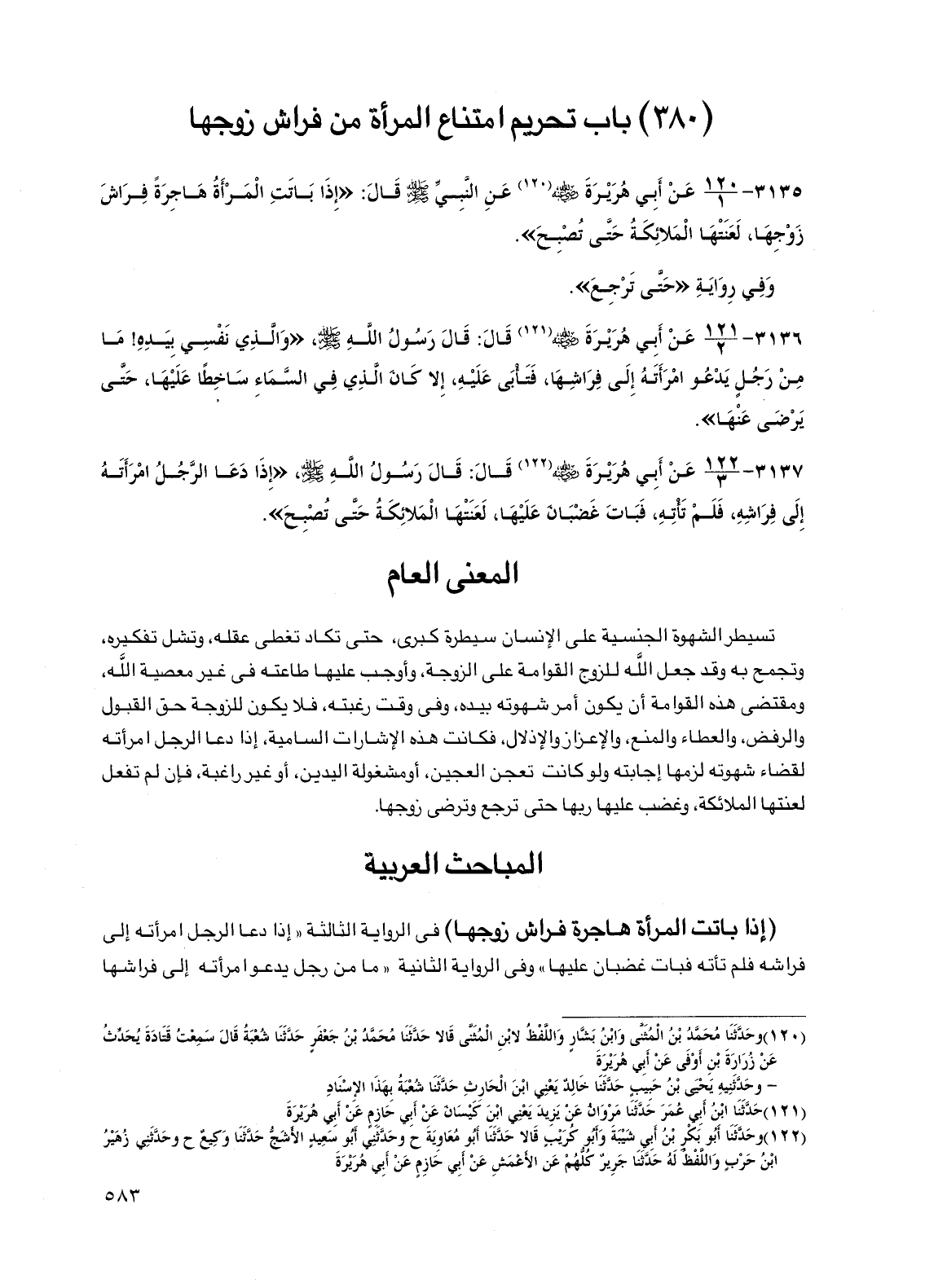 (380) باب تحريم امتناع المرأة من فراش زوجها