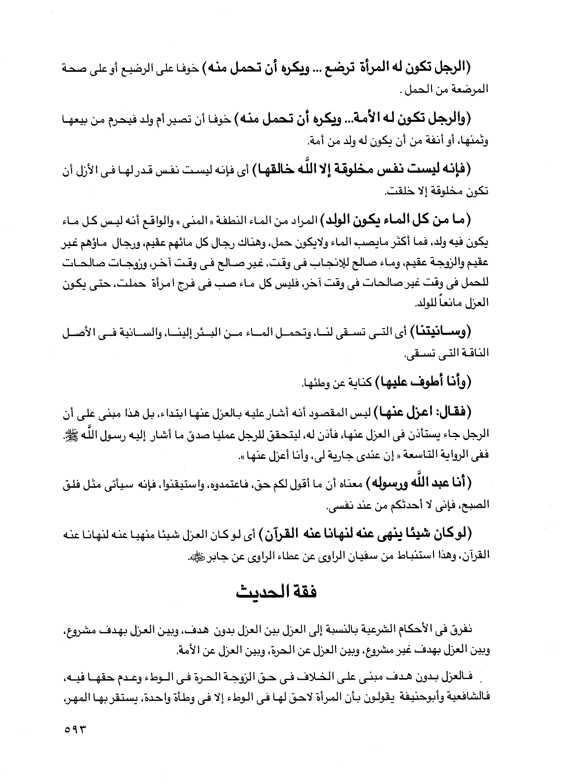 فالعزل بدون هدف مبني على الخلاف في حق الزوجة الحرة في الوطء وعدم حقها فيه، فالشافعية وأبو حنيفة يقولون بأن المرأة لا حق لها في الوطء إلا في وطأة واحدة، يستقر بها المهر،