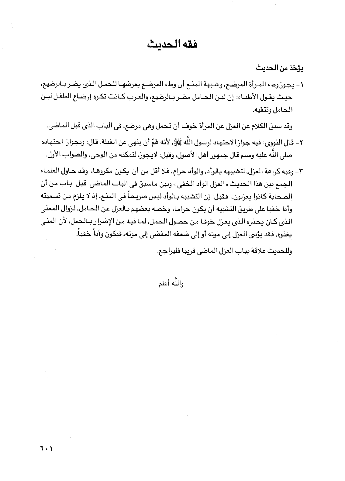 وقد سبق الكلام عن العزل عن المرأة خوف أن تحمل وهي مرضع، في الباب الذي قبل الماضي.