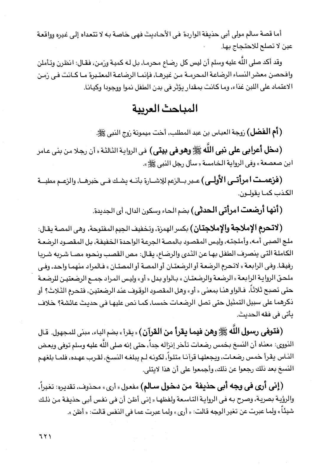 وقد أكد صلى الله عليه وسلم أن ليس كل رضاع محرماً، بل له كمية وزمن، فقال: انظرن وتأملن وافحصن معشر النساء الرضاعة المحرمة من غيرها، فإنما الرضاعة المعتبرة ما كانت في زمن الاعتماد على اللبن غذاء، وما كانت بمقدار يؤثر في بدن الطفل نمواً ووجوداً وكياناً.