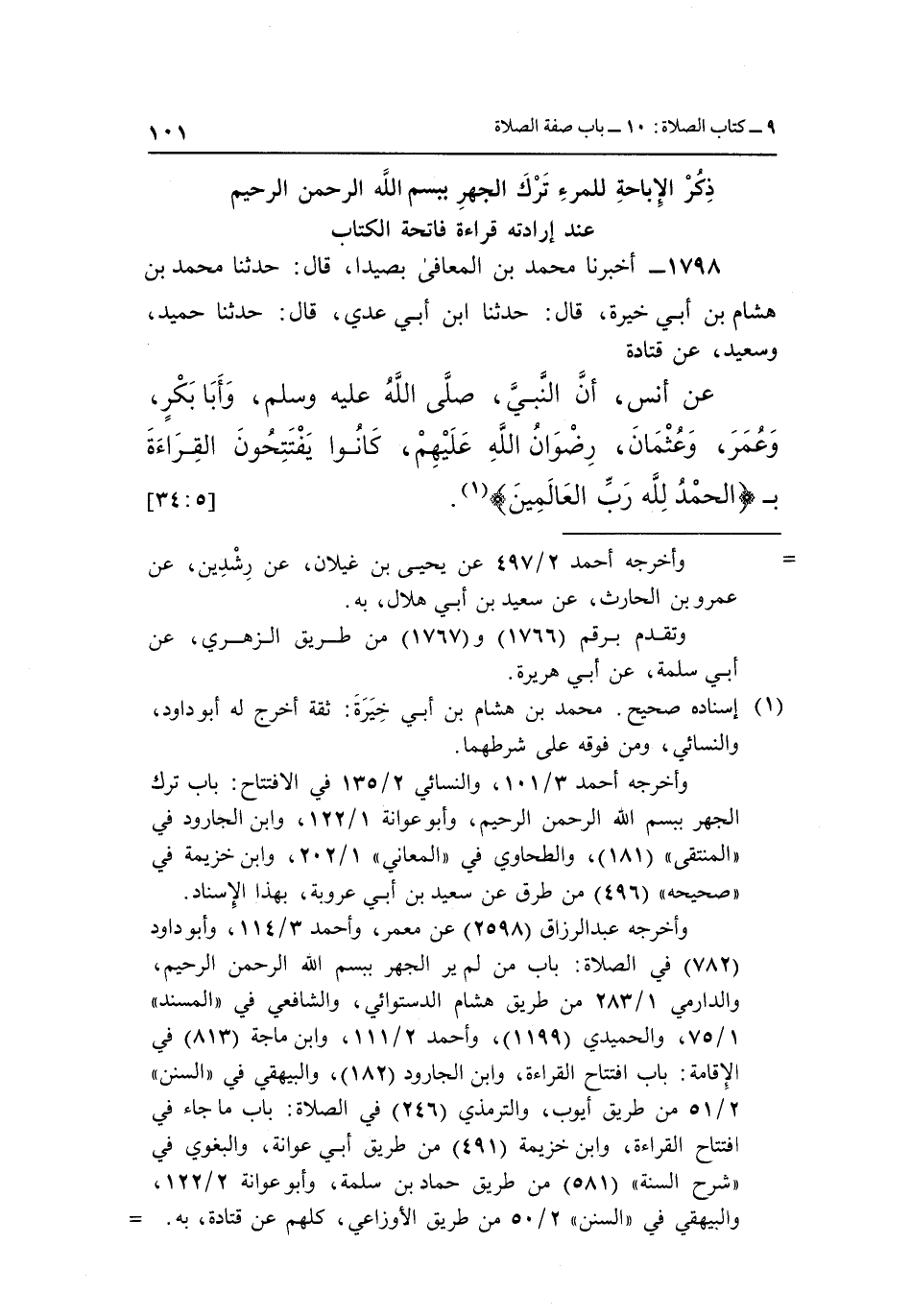 1798 أَخْبَرَنَا مُحَمَّدُ بْنُ الْمُعَافَى بِصَيْدَا قَالَ: حَدَّثَنَا مُحَمَّدُ بْنُ هِشَامِ بْنِ أَبِي خَيْرَةَ قَالَ: حَدَّثَنَا ابْنُ أَبِي عَدِيٍّ قَالَ: حَدَّثَنَا حُمَيْدٌ وَسَعِيدٌ عَنْ قَتَادَةَ