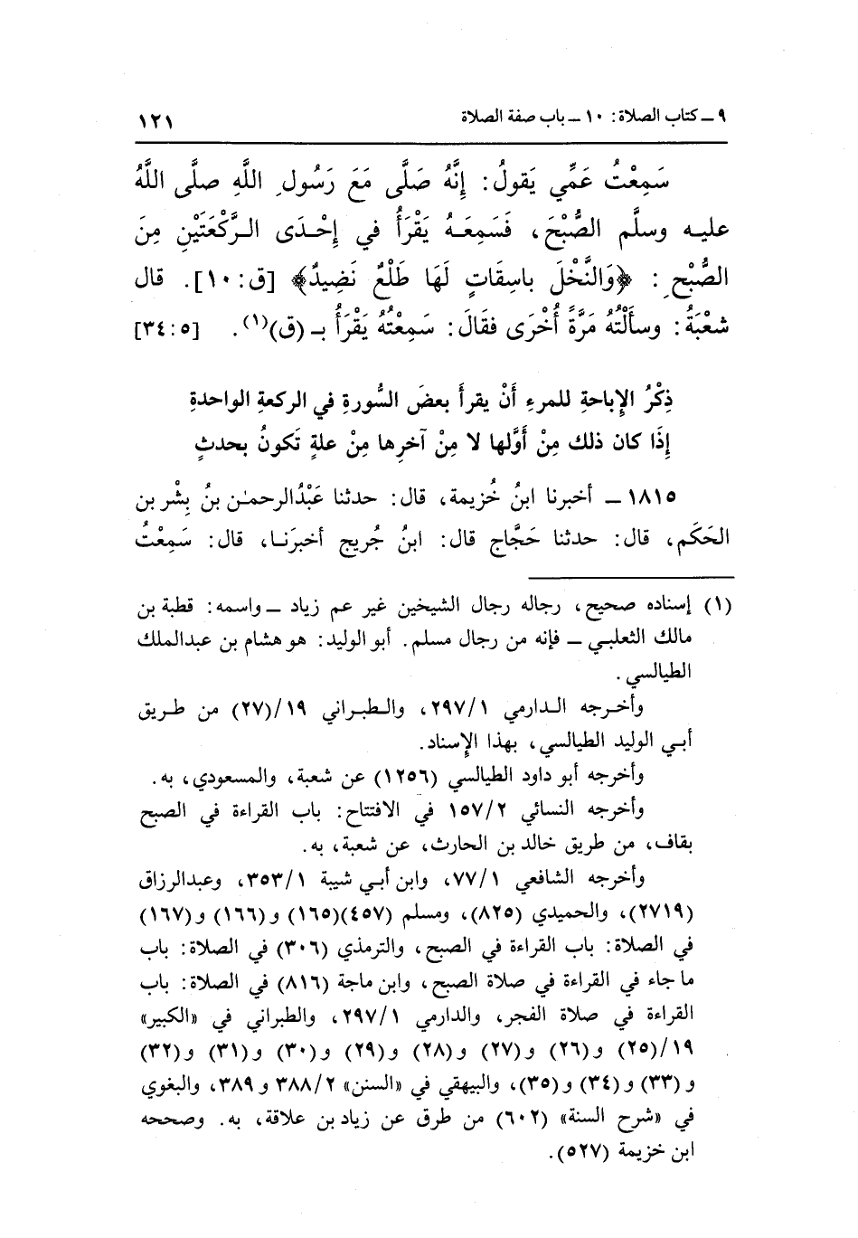 وأخرجه الشافعي 1/77، وابن أبي شيبة 1/353، وعبد الرزاق "2719"، والحميدي "825"، ومسلم "457" "165" و "166" و "167" في الصلاة: باب القراءة في الصبح، والترمذي "306" في الصلاة: باب ما جاء في القراءة في صلاة الصبح، وابن ماجه "816" في الصلاة: باب القراءة في صلاة الفجر، والدرامي 2/297، والطبراني في "الكبير" 19/ "25" و "26" و "27" و "28" و "29" و "30" و "31" و "32" و "33" و "34" و "35"، والبيهقي في "السنن" 2/388 و 389، والبعوي في "شرح السنة" "602" من طرق عن زياد بن علاقة، به. وصححه ابن خزيمة "527".