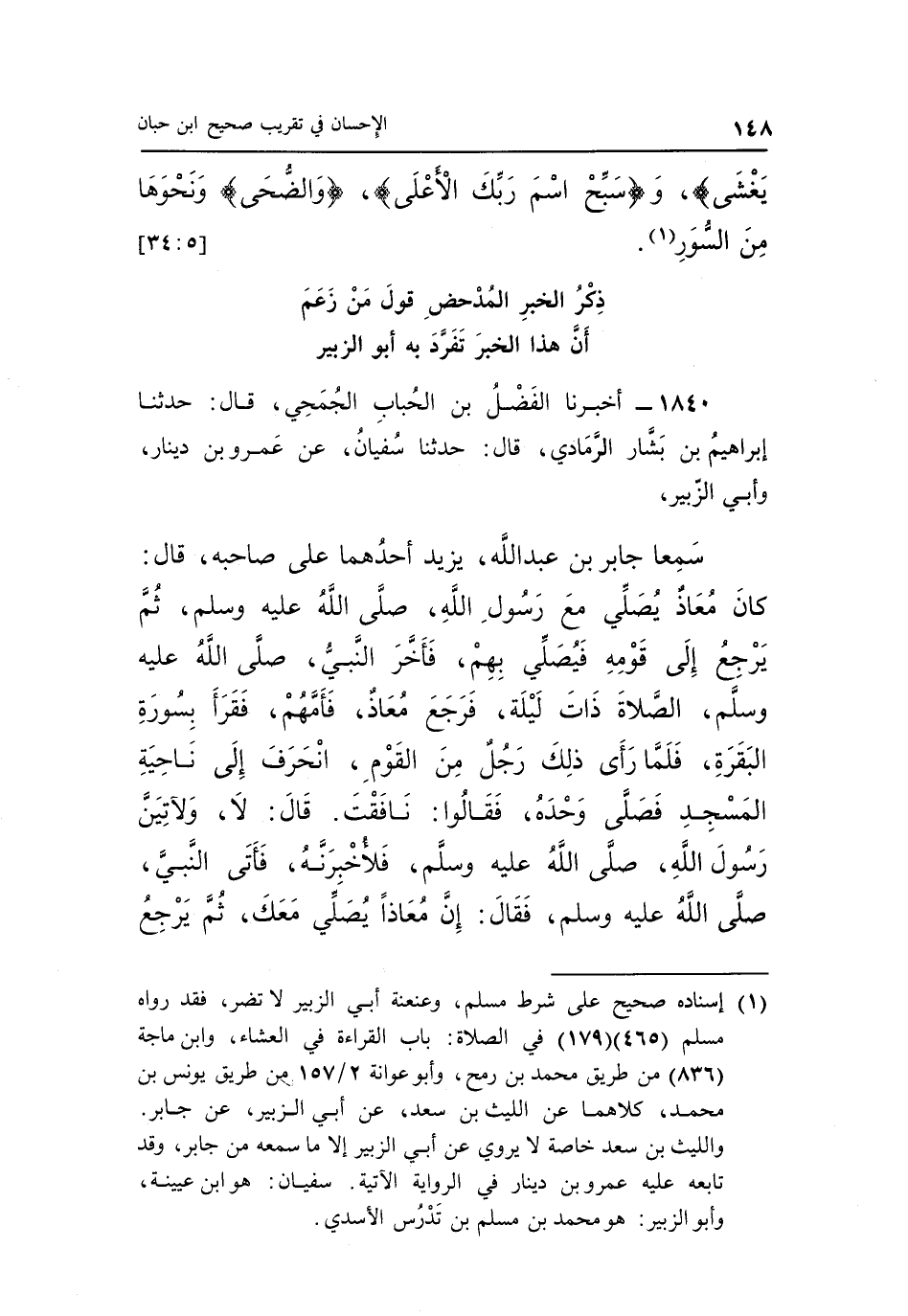 1840 - أَخْبَرَنَا الْفَضْلُ بْنُ الْحُبَابِ الْجُمَحِيُّ، قَالَ: حَدَّثَنَا إِبْرَاهِيمُ بْنُ بَشَّارٍ الرَّمَادِيُّ، قَالَ: حَدَّثَنَا سُفْيَانُ، عَنْ عَمْرِو بْنِ دِينَارٍ، وَأَبِي الزُّبَيْرِ،
