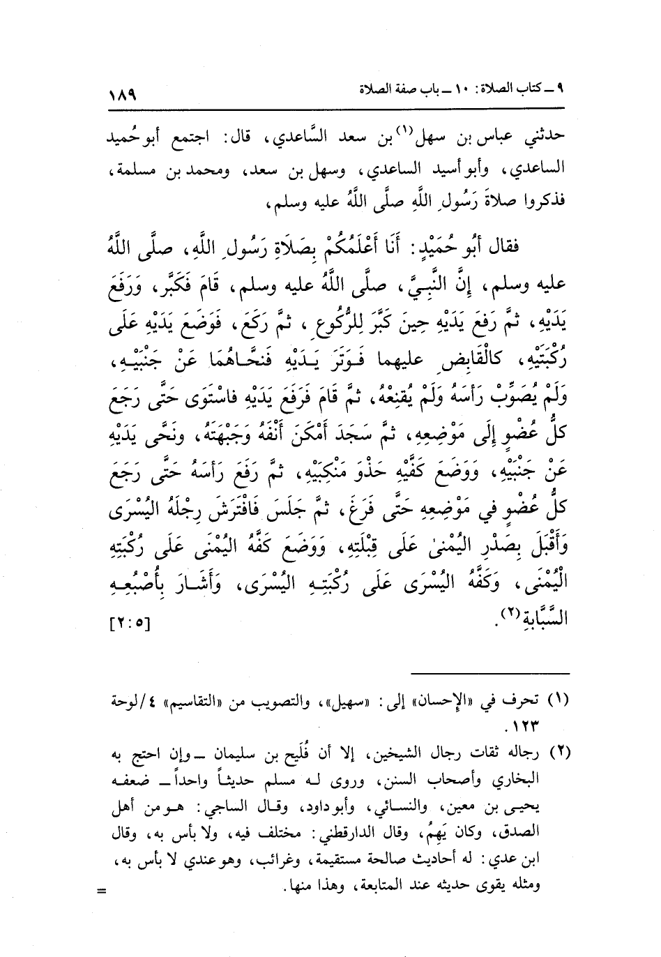 حَدَّثَنِي عَبَّاسُ بْنُ سَهْلِ1 بْنِ سَعْدٍ السَّاعِدِيُّ قَالَ اجْتَمَعَ أَبُو حُمَيْدٍ السَّاعِدِيُّ وَأَبُو أُسَيْدٍ السَّاعِدِيُّ وَسَهْلُ بْنُ سَعْدٍ وَمُحَمَّدُ بْنُ مَسْلَمَةَ فَذَكَرُوا صَلَاةَ رَسُولِ اللَّهِ صَلَّى اللَّهُ عَلَيْهِ وَسَلَّمَ