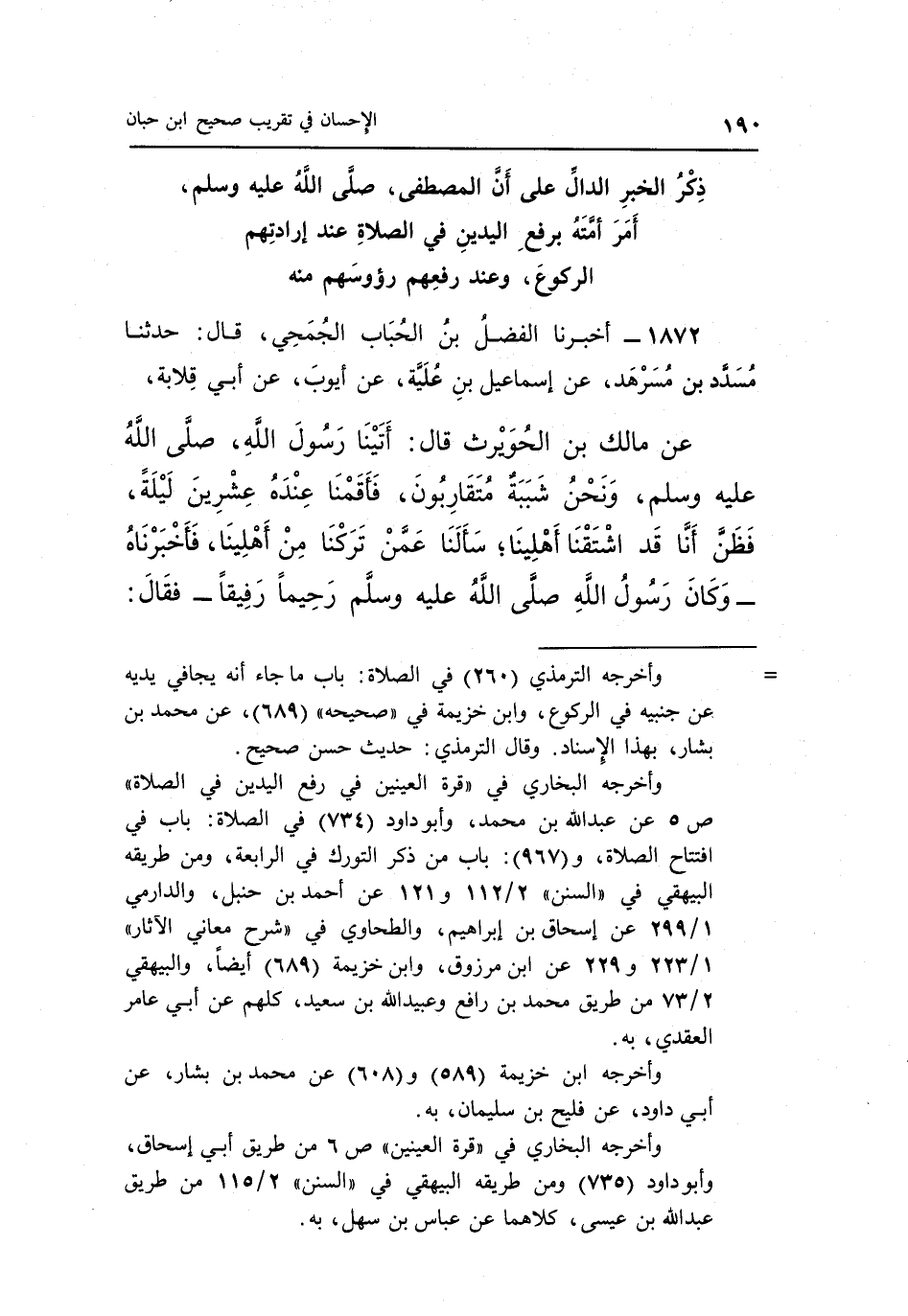 ذِكْرُ الْخَبَرِ الدَّالِّ عَلَى أَنَّ الْمُصْطَفَى صَلَّى اللَّهُ عَلَيْهِ وَسَلَّمَ أَمَرَ أُمَّتَهُ بِرَفْعِ الْيَدَيْنِ فِي الصَّلَاةِ عِنْدَ إِرَادَتِهِمُ الرُّكُوعَ وَعِنْدَ رَفْعِهِمْ رؤوسهم مِنْهُ