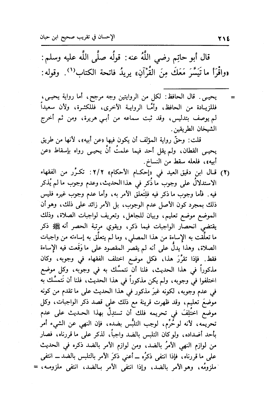 قال أبو خاتم رضى الله تعالى عنه قوله صلى الله عليه وسلم: و "قرأ مَا تَيَسَّرَ مَعَكَ مِنَ الْقُرْآنِ" يُرِيدُ فَاتِحَةَ الكتاب 1وقوله: