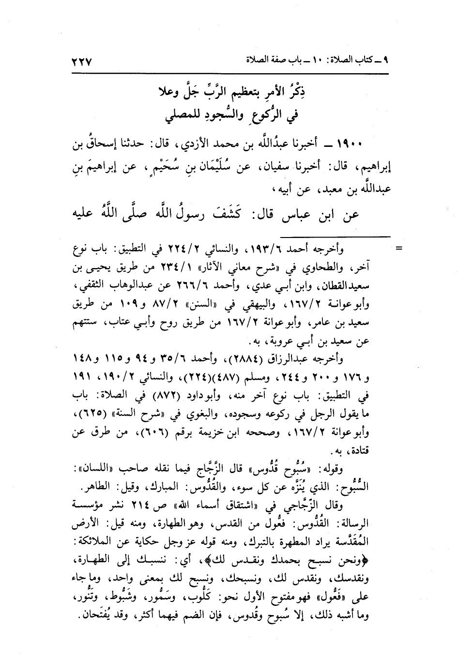 وأخرجه عبد الرزاق "2884"، وأحمد 6/35و94و115و148و176و200و244، ومسلم "487" "224"،والنسائي 2/190، 191 في التطبيق: باب نوع آخر منه، وأبو داود "872" في الصلاة: باب ما يقول الرجل في ركوعه وسجوده، والبغوي في شرح السنة "625"، وأبو عوانة 2/167، وصححه ابن خزيمة برقم "606"، من طرق عن قتادة، به.