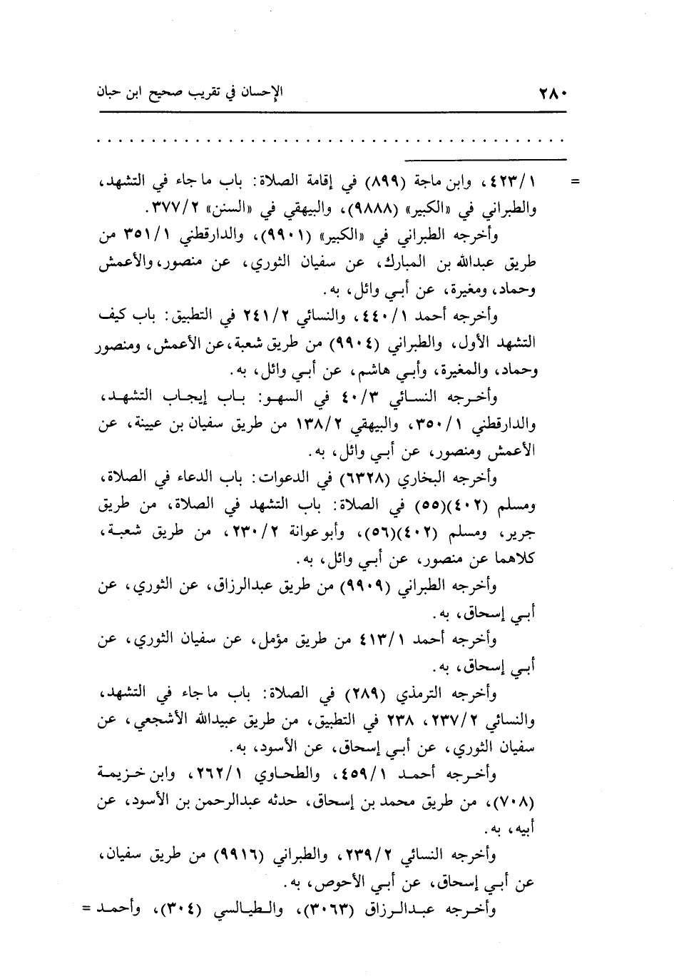 = 1/423، وابن ماجة "899" في إقامة الصلاة: باب ما جاء في التشهد، والطبراني في الكبير "9888"، والبيهقي في السنن 2/377.