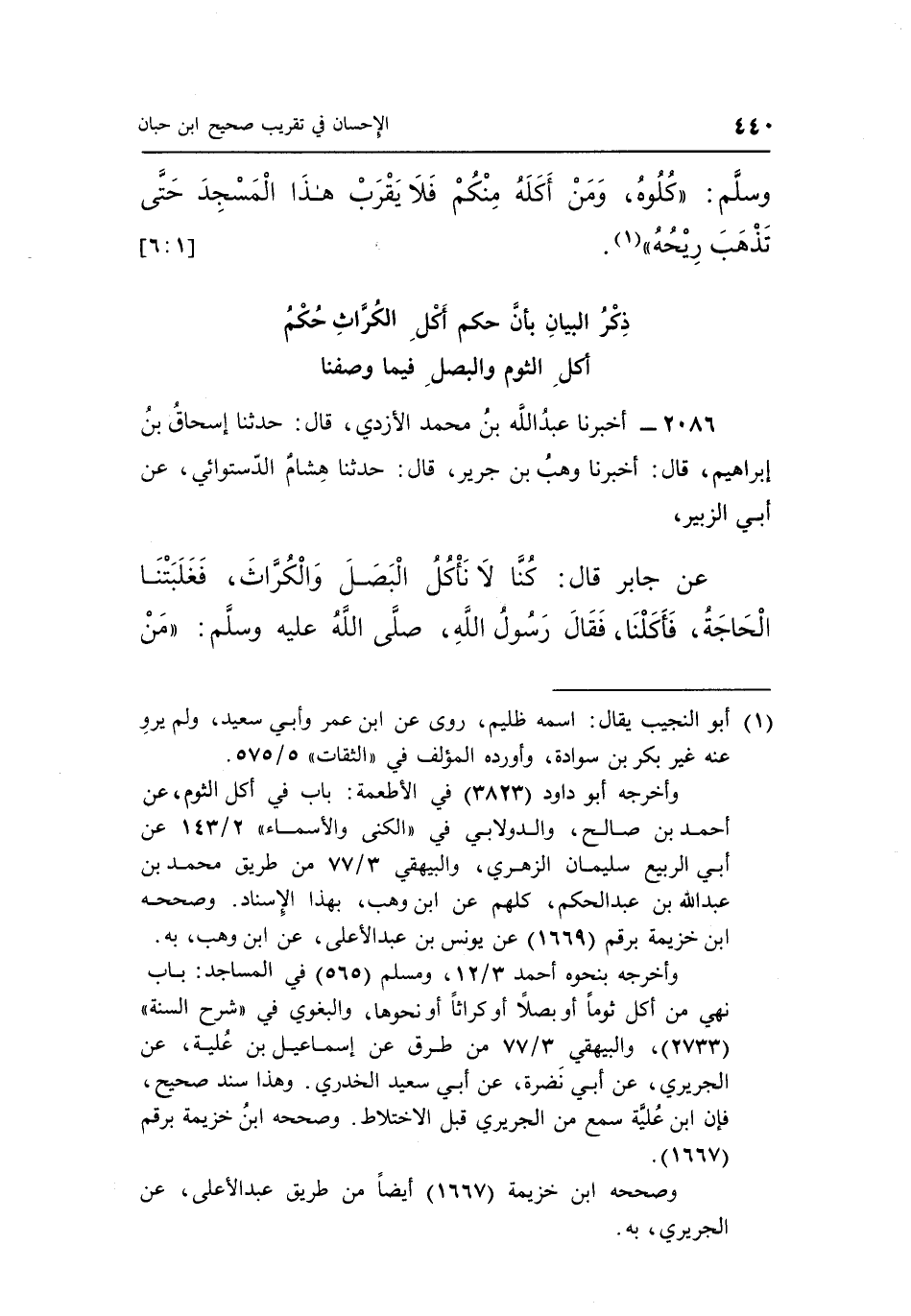 وَسَلَّمَ: "كُلُوهُ وَمَنْ أَكَلَهُ مِنْكُمْ فَلَا يَقْرَبْ هذا المسجد حتى تذهب ريحه" 1. [1: 6]