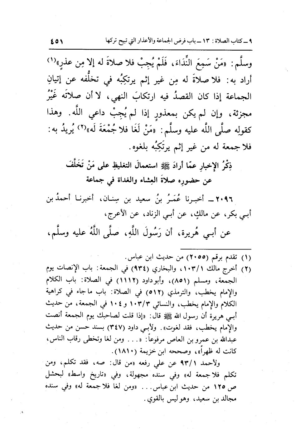 2 أخرج مالك 1/103، والبخاري "934" في الجمعة: باب الإنصات يوم الجمعة، ومسلم "851"، وأبو داود "1112" في الصلاة: باب الكلام والإمام يخطب، والترمذي "512" في الصلاة: باب ما جاء في كراهية الكلام والإمام يخطب، والنسائي 3/103و104 في الجمعة، من حديث أَبِي هُرَيْرَةَ أَنَّ رَسُولَ اللَّهِ صَلَّى اللَّهُ عليه وسلم قال: إذا قلت لصاحبك يوم الجمعة أنصت والإمام يخطب، فقد لغوت. ولأبي داود "347" بسند حسن من حديث عبد الله بن عمرو بن العاص مرفوعاً: " ... ومن لغا وتخطى رقاب الناس، كانت له ظهراً". وصححه ابن خزيمة "1810".
