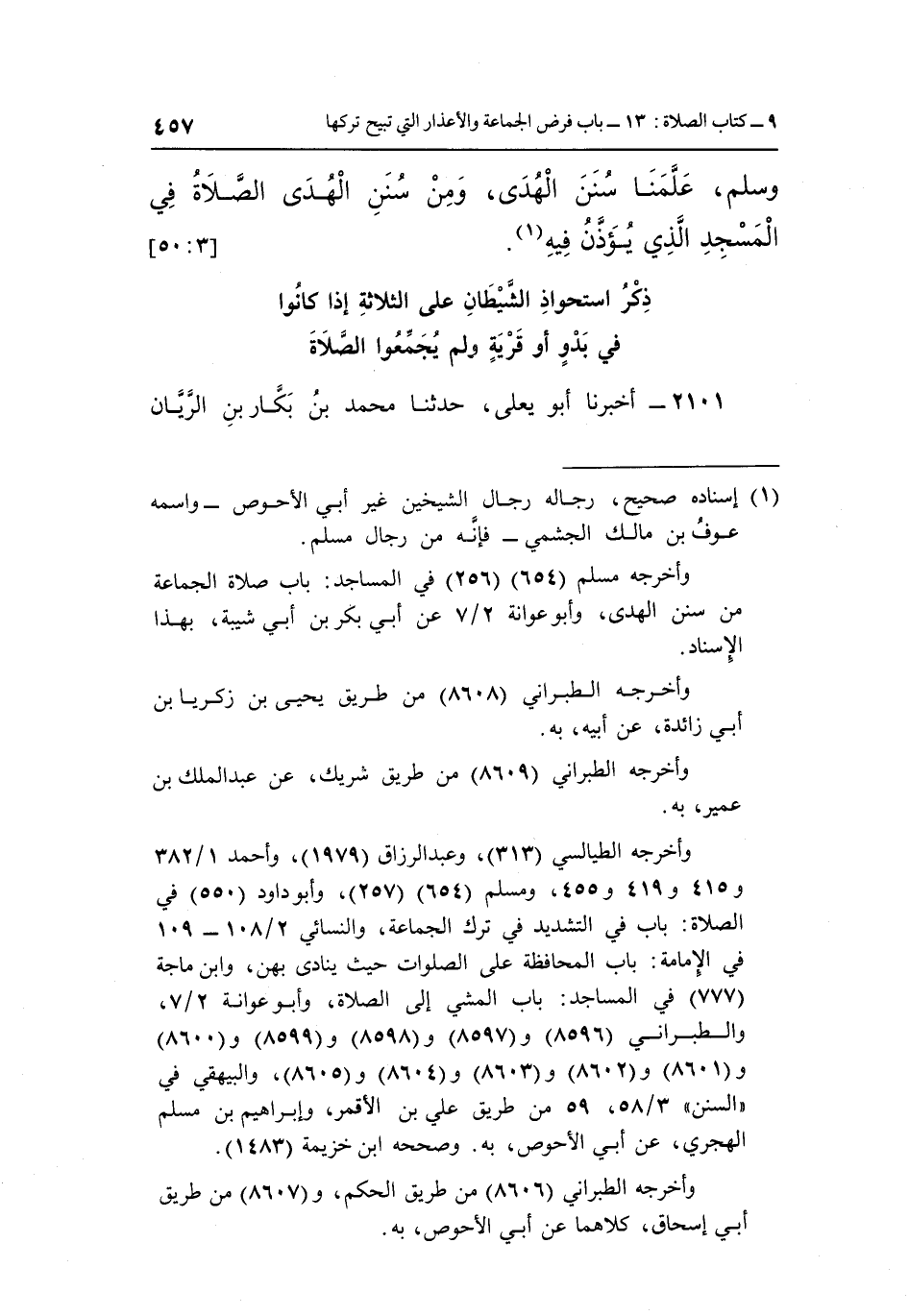وَسَلَّمَ عَلَّمَنَا سُنَنَ الْهُدَى وَمِنْ سُنَنِ الْهُدَى الصلاة في المسجد الذي يؤذن فيه1. [3: 50]