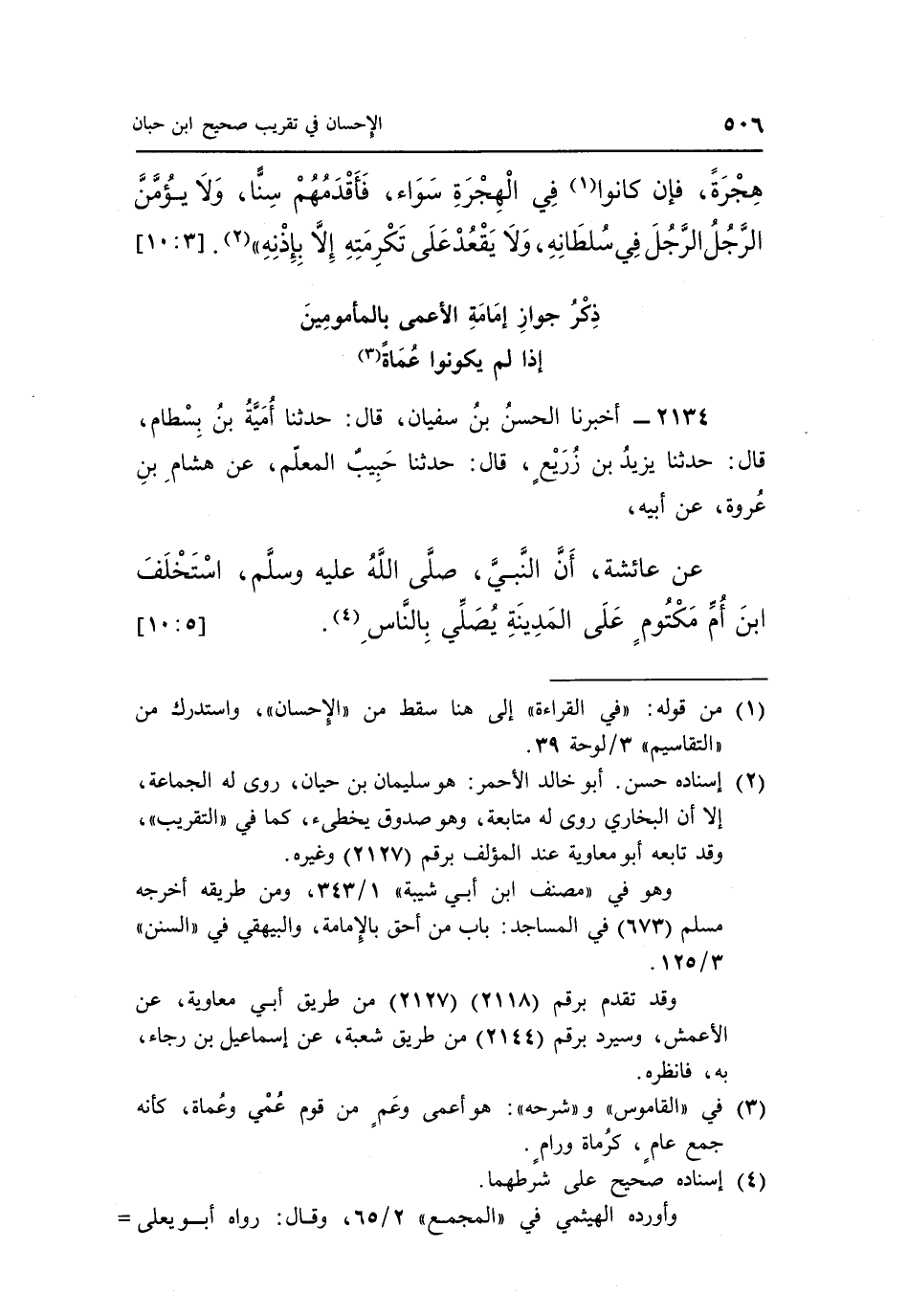 عَنْ عَائِشَةَ، أَنَّ النَّبِيَّ صَلَّى اللَّهُ عَلَيْهِ وَسَلَّمَ، اسْتَخْلَفَ بن أم مكتوم على المدينة يصلي بالناس4. [5: 10]