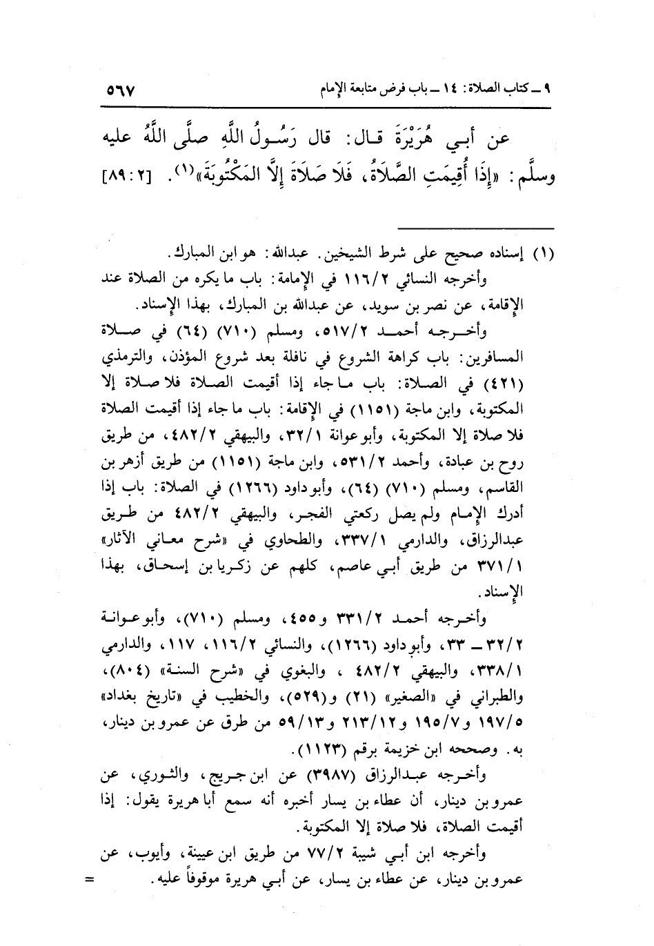 عَنْ أَبِي هُرَيْرَةَ قَالَ: قَالَ رَسُولُ اللَّهِ صَلَّى اللَّهُ عَلَيْهِ وَسَلَّمَ: "إِذَا أُقِيمَتِ الصَّلَاةُ، فلا صلاة إلا المكتوبة" 1. [2: 89]