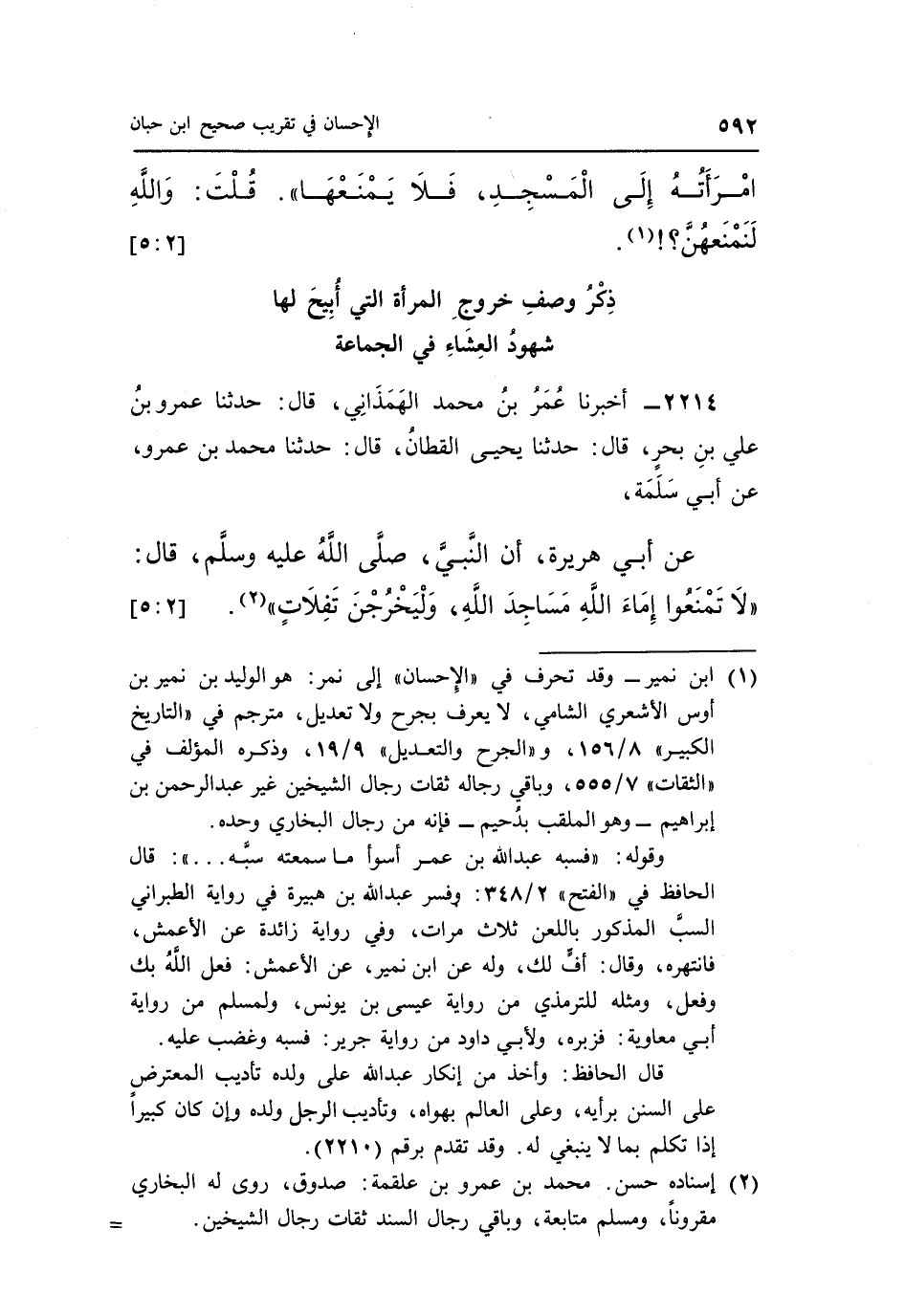 امْرَأَتُهُ إِلَى الْمَسْجِدِ، فَلَا يَمْنَعْهَا". قُلْتَ: وَاللَّهِ لنمنعهن؟! 1. [2: 5]