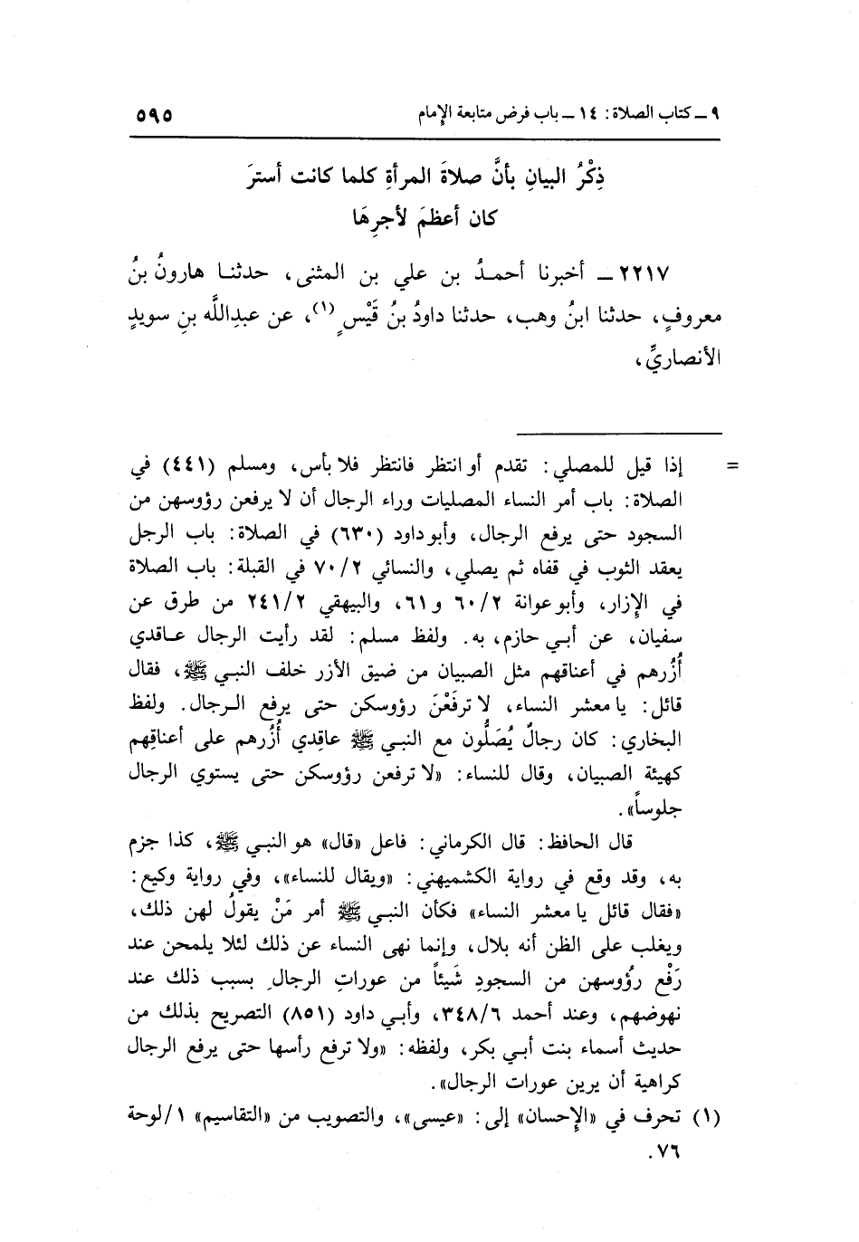 2217 - أَخْبَرَنَا أَحْمَدُ بْنُ عَلِيِّ بْنِ الْمُثَنَّى، حَدَّثَنَا هَارُونُ بْنُ مَعْرُوفٍ، حَدَّثَنَا ابْنُ وَهْبٍ، حَدَّثَنَا دَاوُدُ بْنُ قَيْسٍ1، عن عبد الله بن سويد الأنصاري،