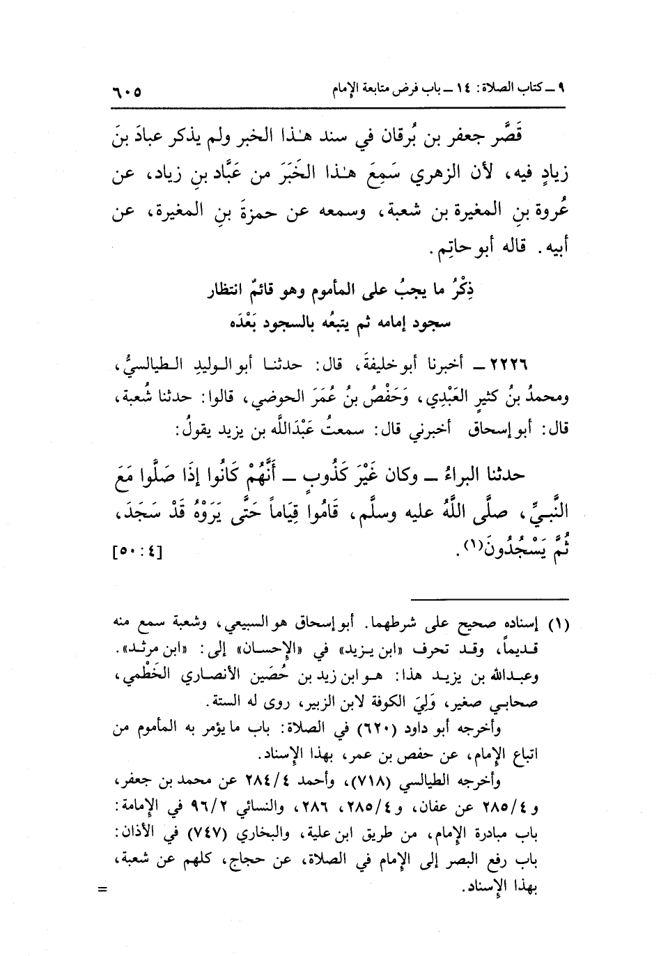 وأخرجه أبو داود "620" في الصلاة: باب ما يؤمر به المأموم من اتباع الإمام، عن حفص بن عمر، بهذا الإسناد.