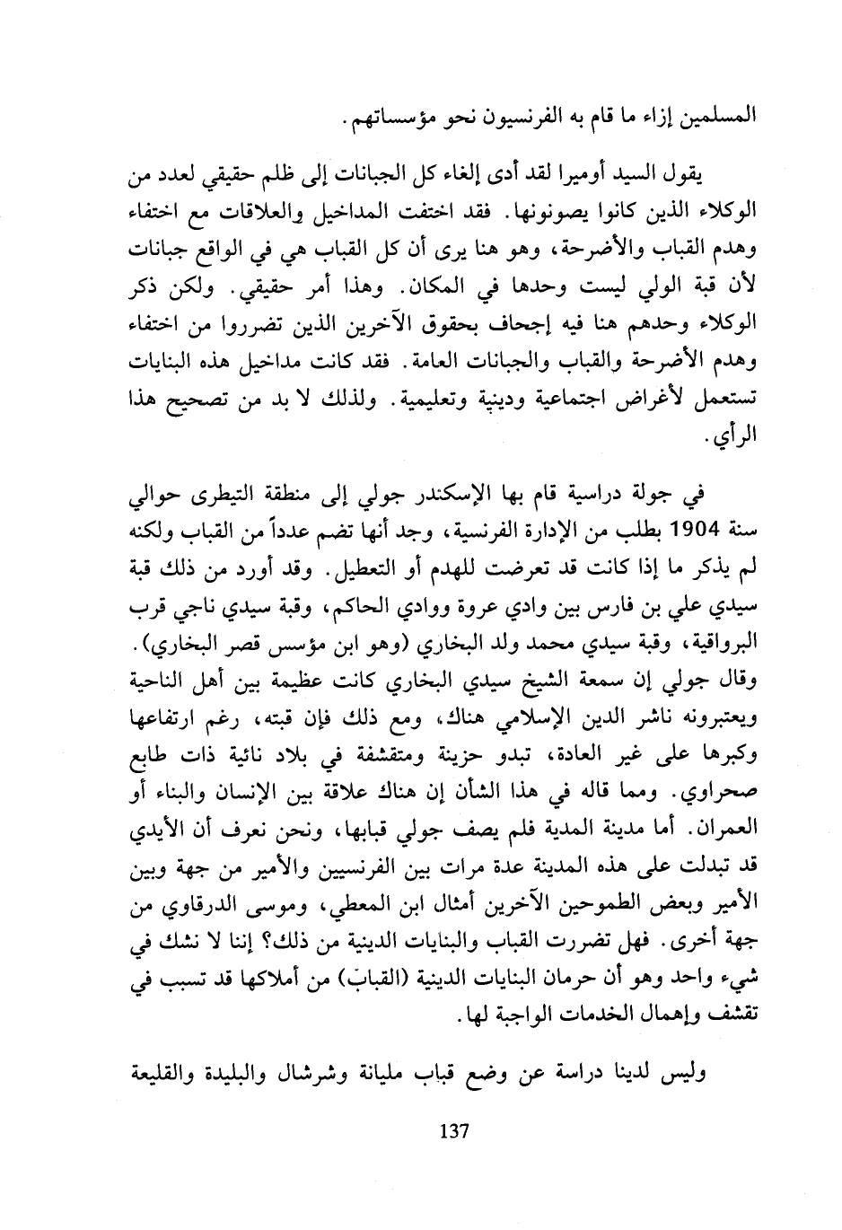 المسلمين إزاء ما قام به الفرنسيون نحو مؤسساتهم.