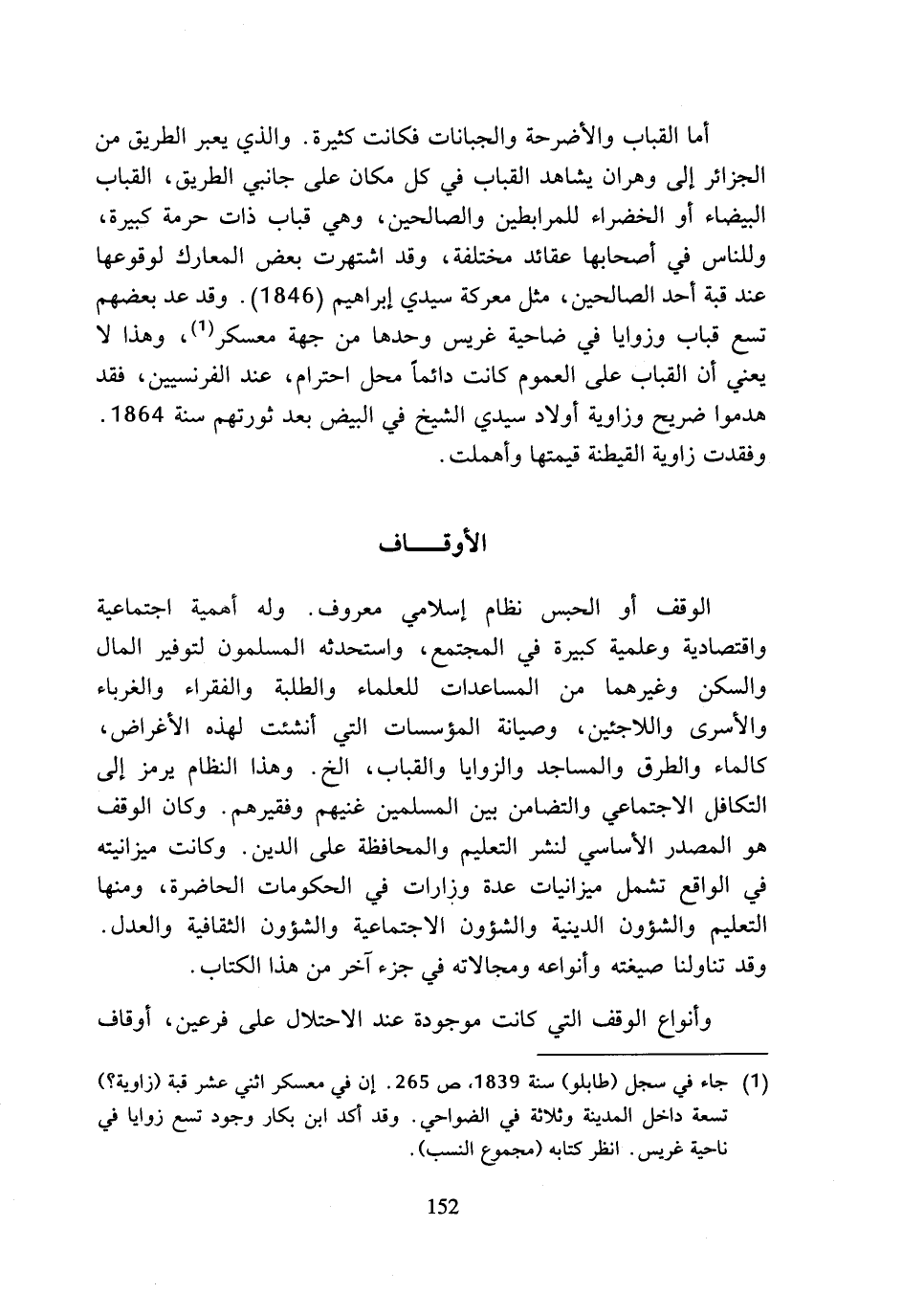 (¬1) جاء في سجل (طابلو) سنة 1839، ص 265. إن في معسكر اثني عشر قبة (زاوية؟) تسعة داخل المدينة وثلاثة في الضواحي. وقد أكد ابن بكار وجود تسع زوايا في ناحية غريس. انظر كتابه (مجموع النسب).