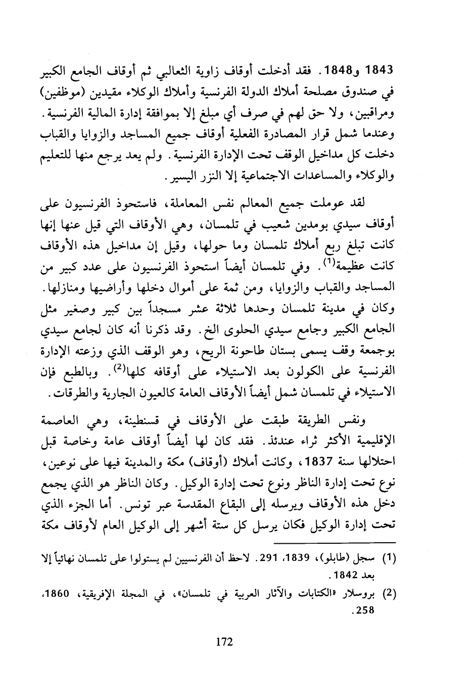 (¬1) سجل (طابلو)، 1839، 291. لاحظ أن الفرنسيين لم يستولوا على تلمسان نهائيا إلا بعد 1842.