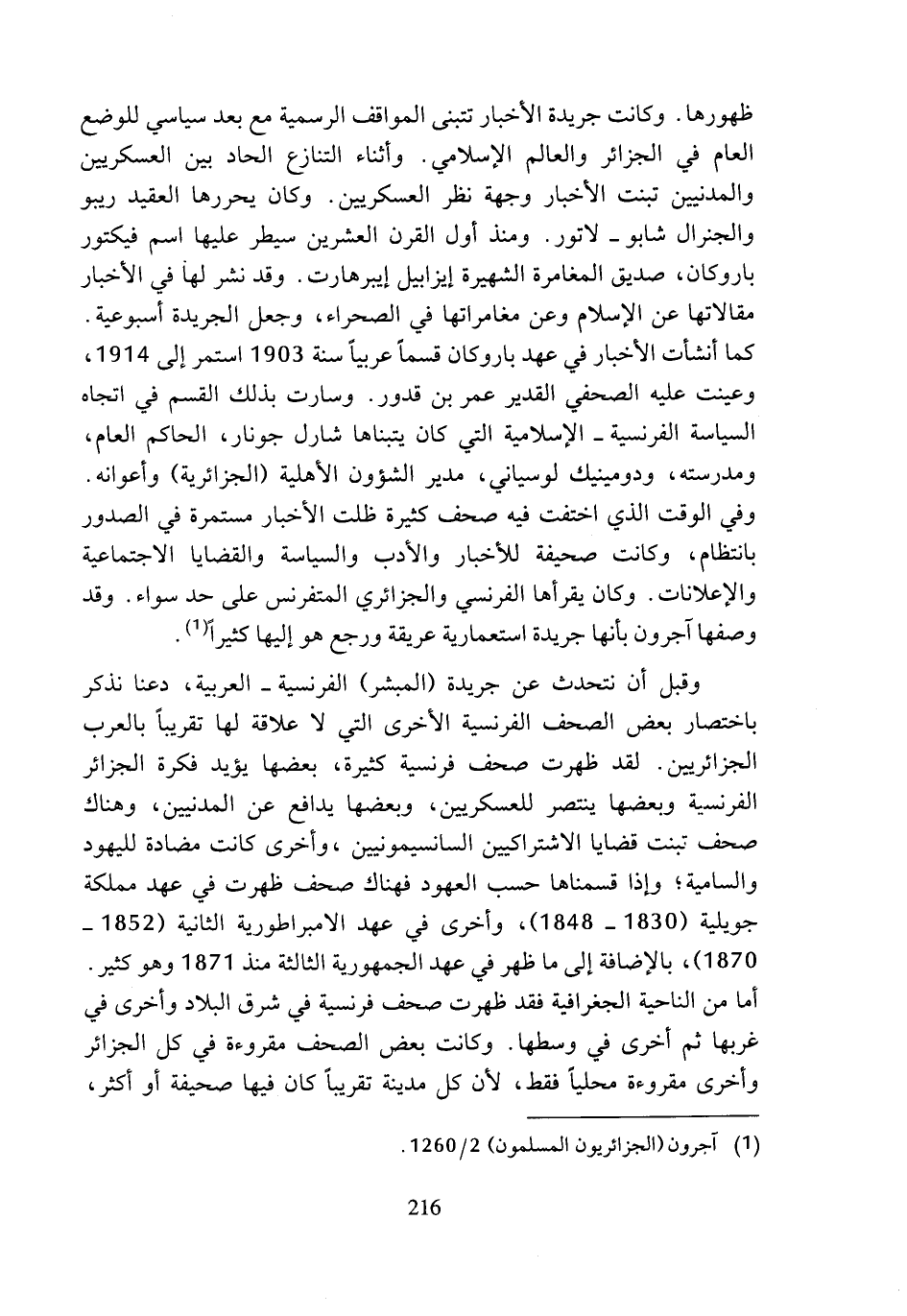 (¬1) آجرون (الجزائريون المسلمون) 1/ 1260.