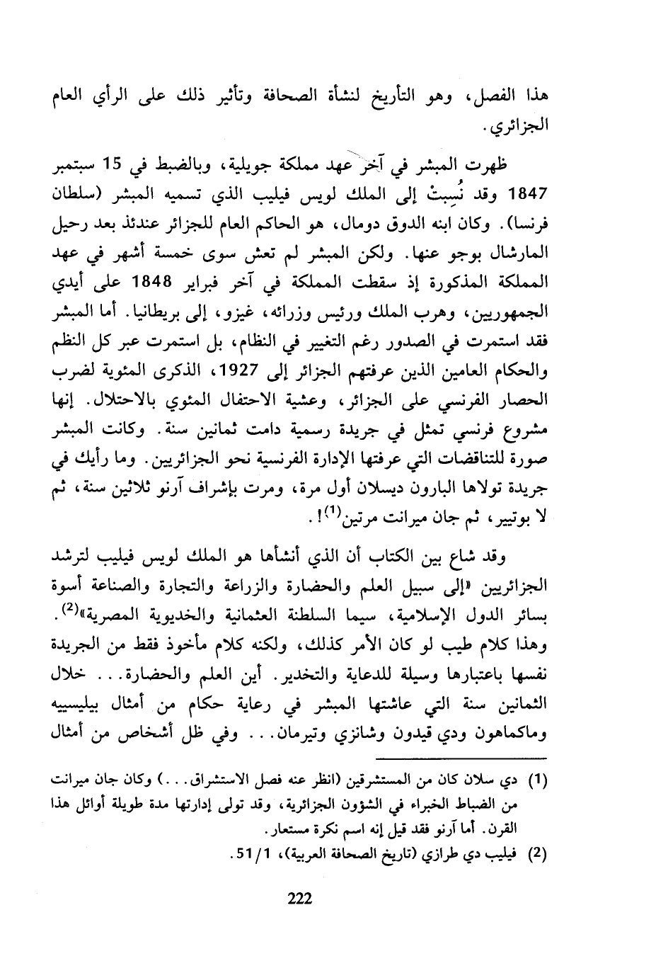 (¬1) دي سلان كان من المستشرقين (انظر عنه فصل الاستشراق ...) وكان جان ميرانت من الضباط الخبراء في الشؤون الجزائرية، وقد تولى إدارتها مدة طويلة أوائل هذا القرن. أما آرنو فقد قيل إنه اسم نكرة مستعار.
