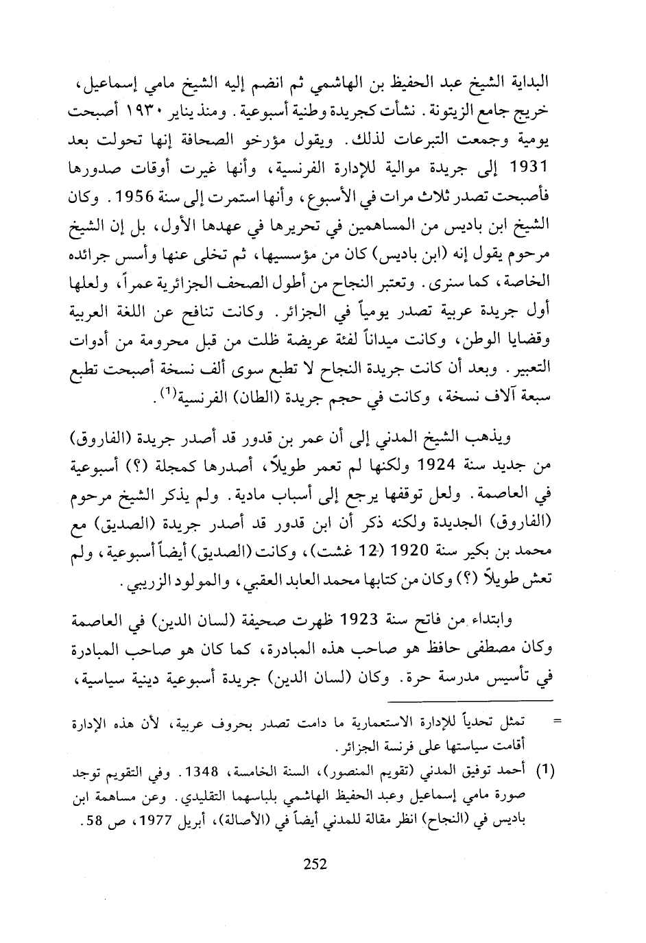 (¬1) أحمد توفيق المدني (تقويم المنصور)، السنة الخامسة، 1348. وفي التقويم توجد صورة مامي إسماعيل وعبد الحفيظ الهاشمي بلباسهما التقليدي. وعن مساهمة ابن باديس في (النجاح) انظر مقالة للمدني أيضا في (الأصالة)، أبريل 1977، ص 58.