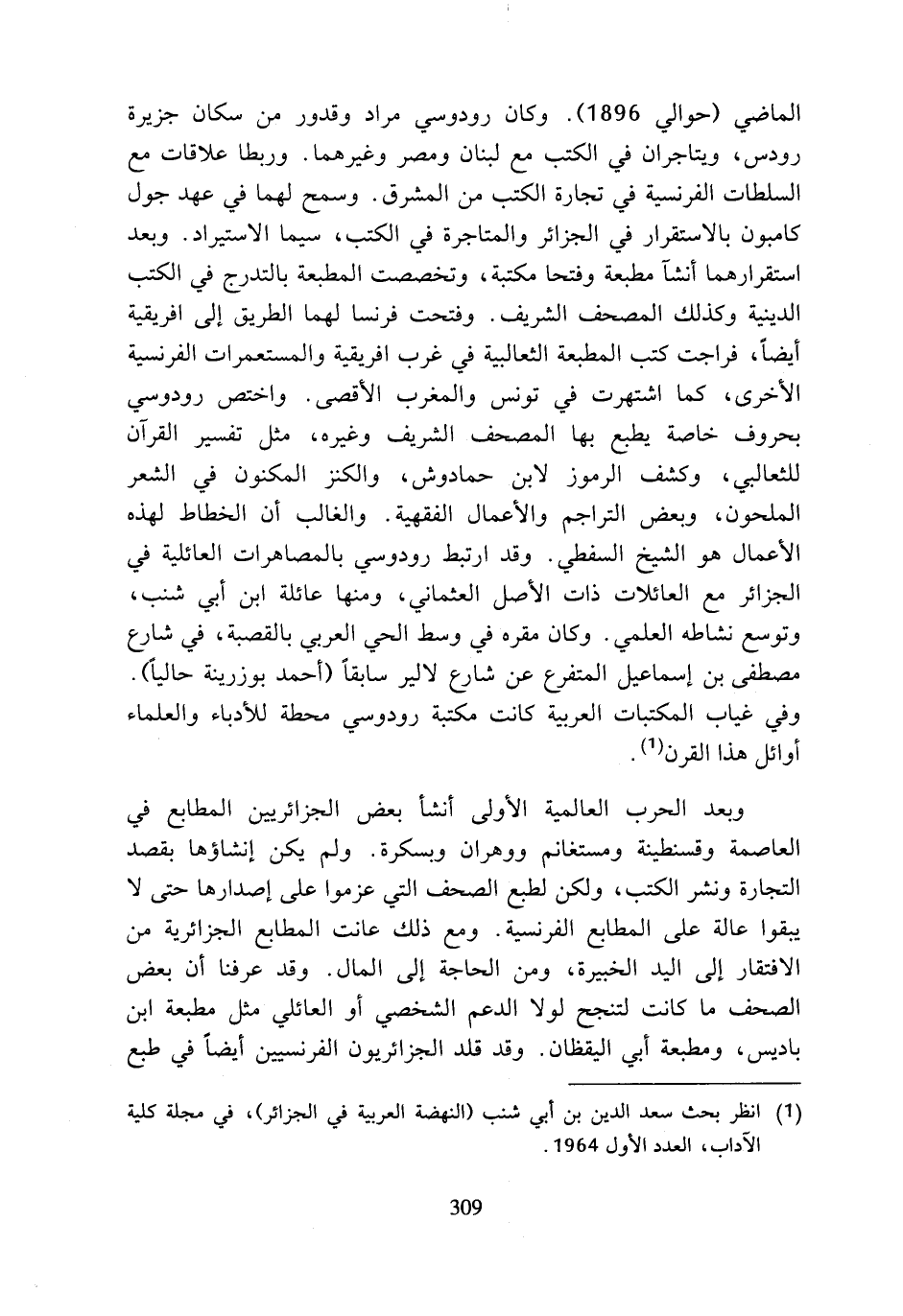 (¬1) انظر بحث سعد الدين بن أبي شنب (النهضة العربية في الجزائر)، في مجلة كلية الآداب، العدد الأول 1964.