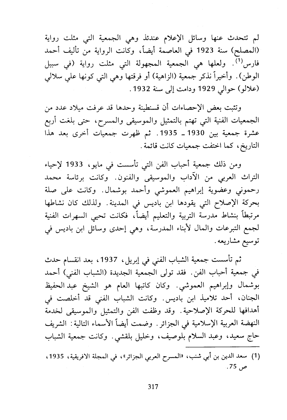 (¬1) سعد الدين بن أبي شنب، (المسرح العربي الجزائر)، في المجلة الافريقية، 1935، ص 75.