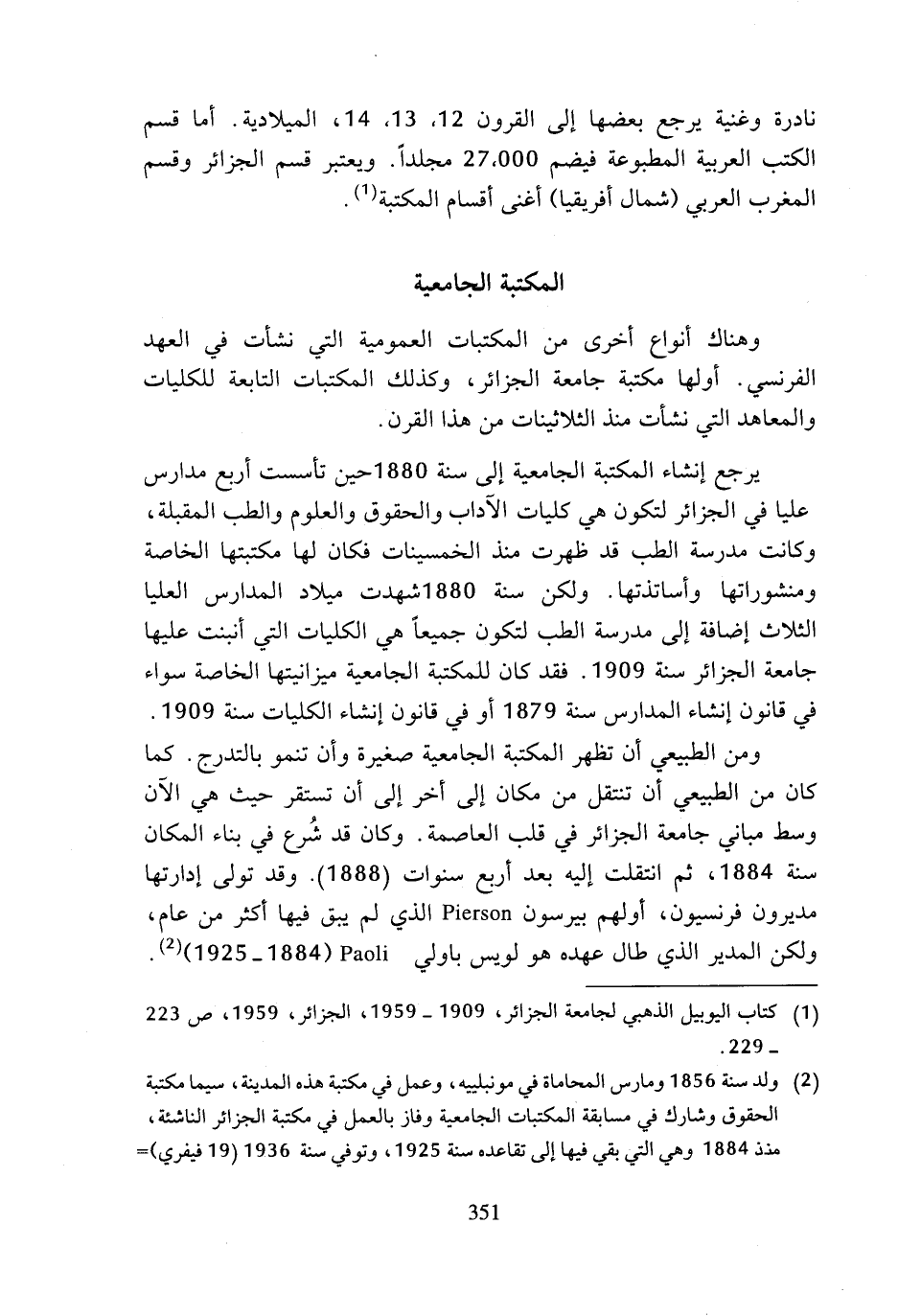 (¬1) كتاب اليوبيل الذهبي لجامعة الجزائر، 1909 - 1959، الجزائر، 1959، ص 223 - 229.