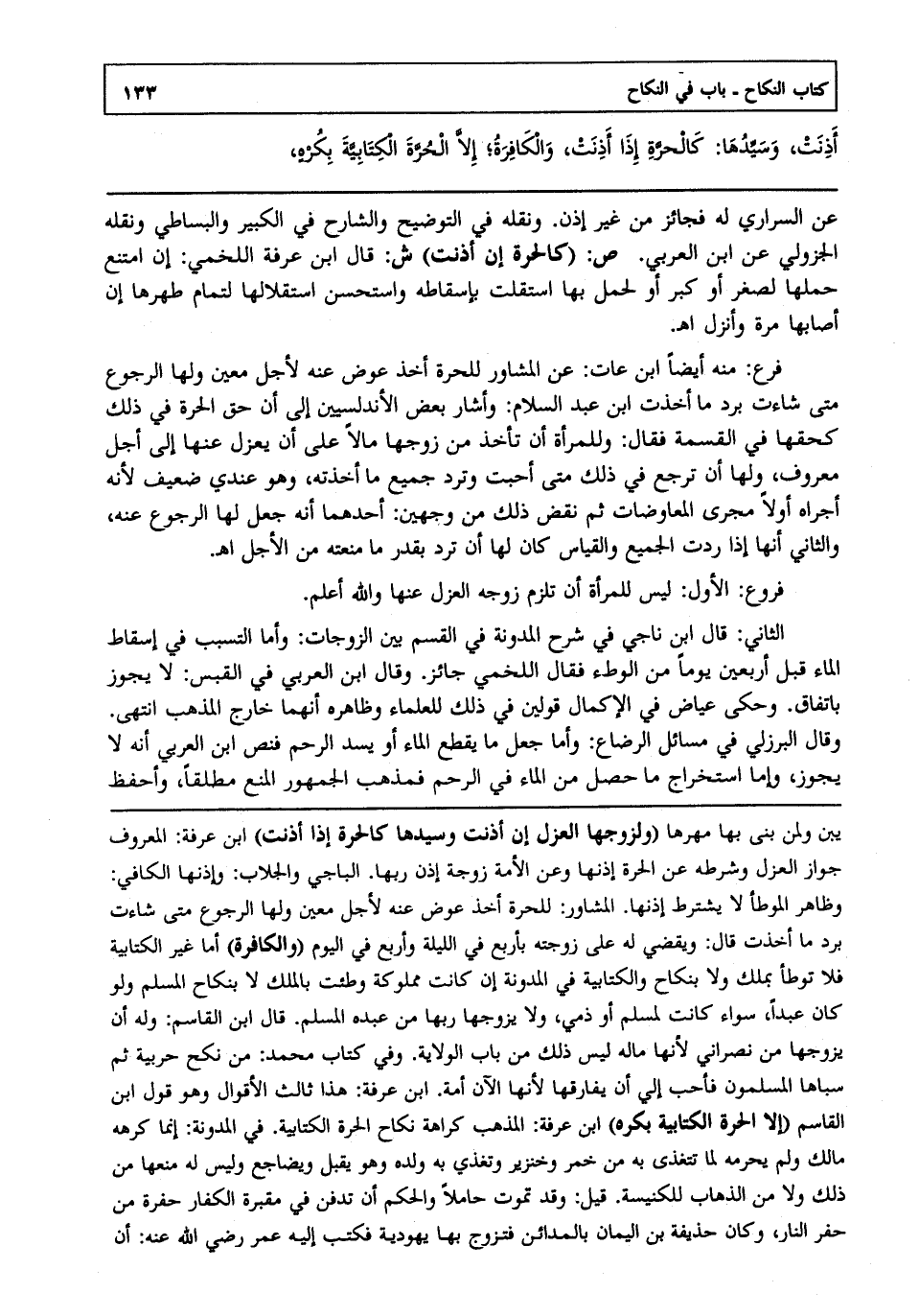 أذنت وسيدها :كالحرة إذا أذنت والكافرة إلا الحرة الكتابية بكره
