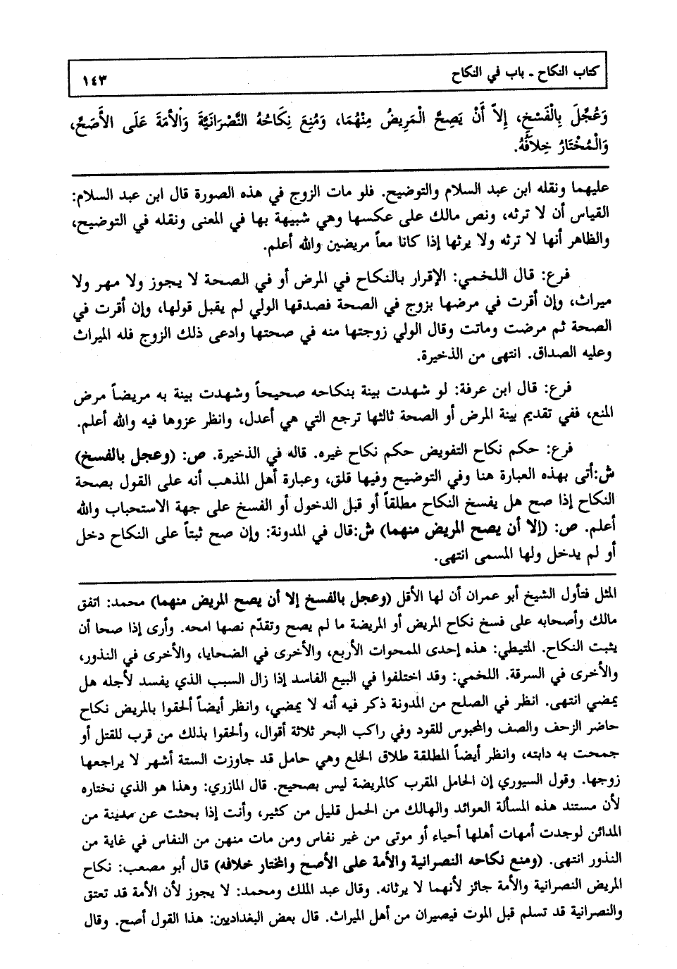 وعجل بالفسخ إلا أن يصح المريض منهما ومنع نكاحه النصرانية والأمة على الأصح والمختار خلافه