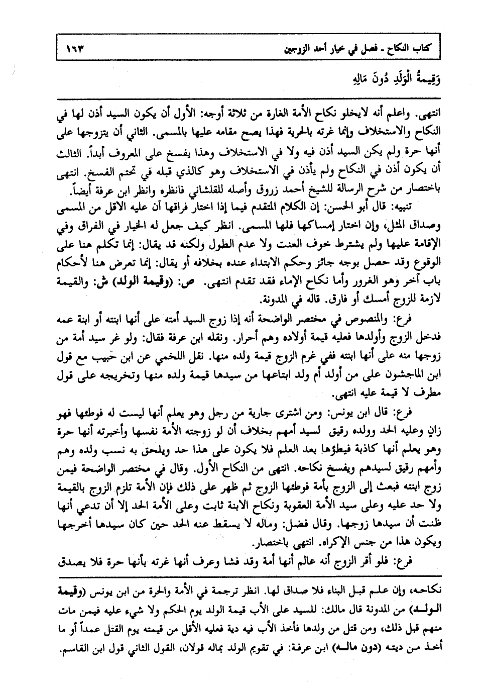 فرع: والمنصوص في مختصر الواضحة أنه إذا زوج السيد أمته على أنها ابنته أو ابنة عمه فدخل الزوج وأولدها فعليه قيمة أولاده وهم أحرار ونقله ابن عرفة فقال ولو غر سيد أمة من زوجها منه على أنها ابنته ففي غرم الزوج قيمة ولده منها نقل اللخمي عن ابن حبيب مع قول ابن الماجشون على من أولد أم ولد ابتاعها من سيدها قيمة ولده منها وتخريجه على قول مطرف لا قيمة عليه انتهى.