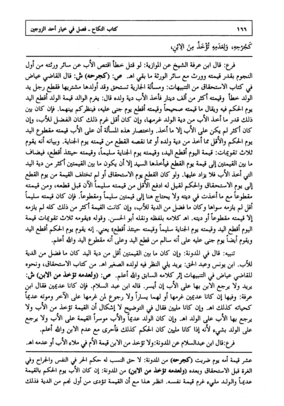 كجرحه ، ولعدمه تؤخذ من الابن ،